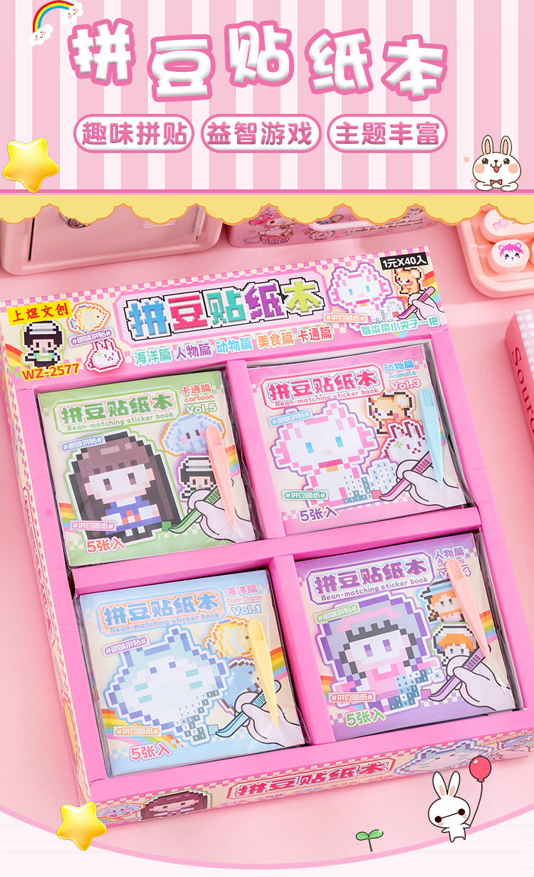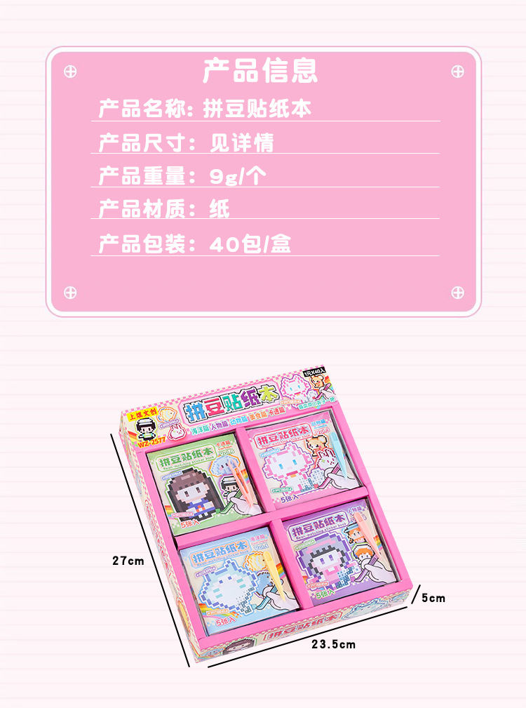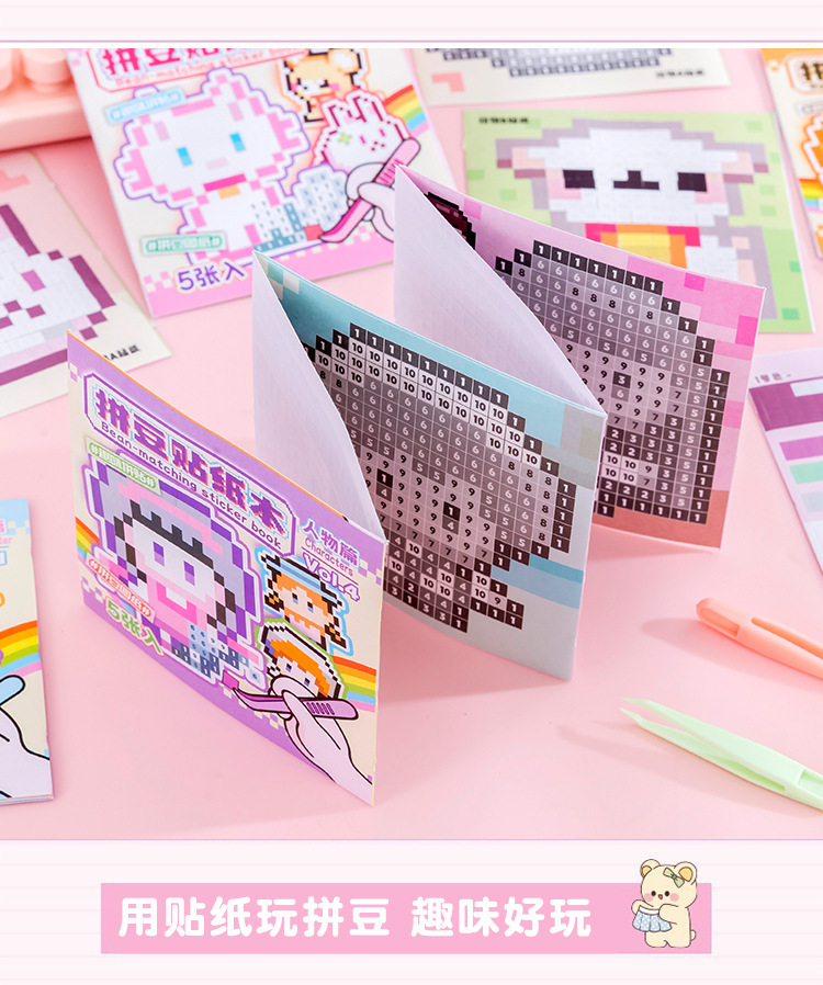 内含:2张拼豆素材贴+2张场景图+封面+镊子*1