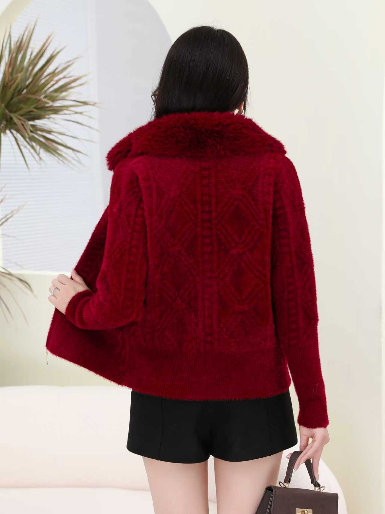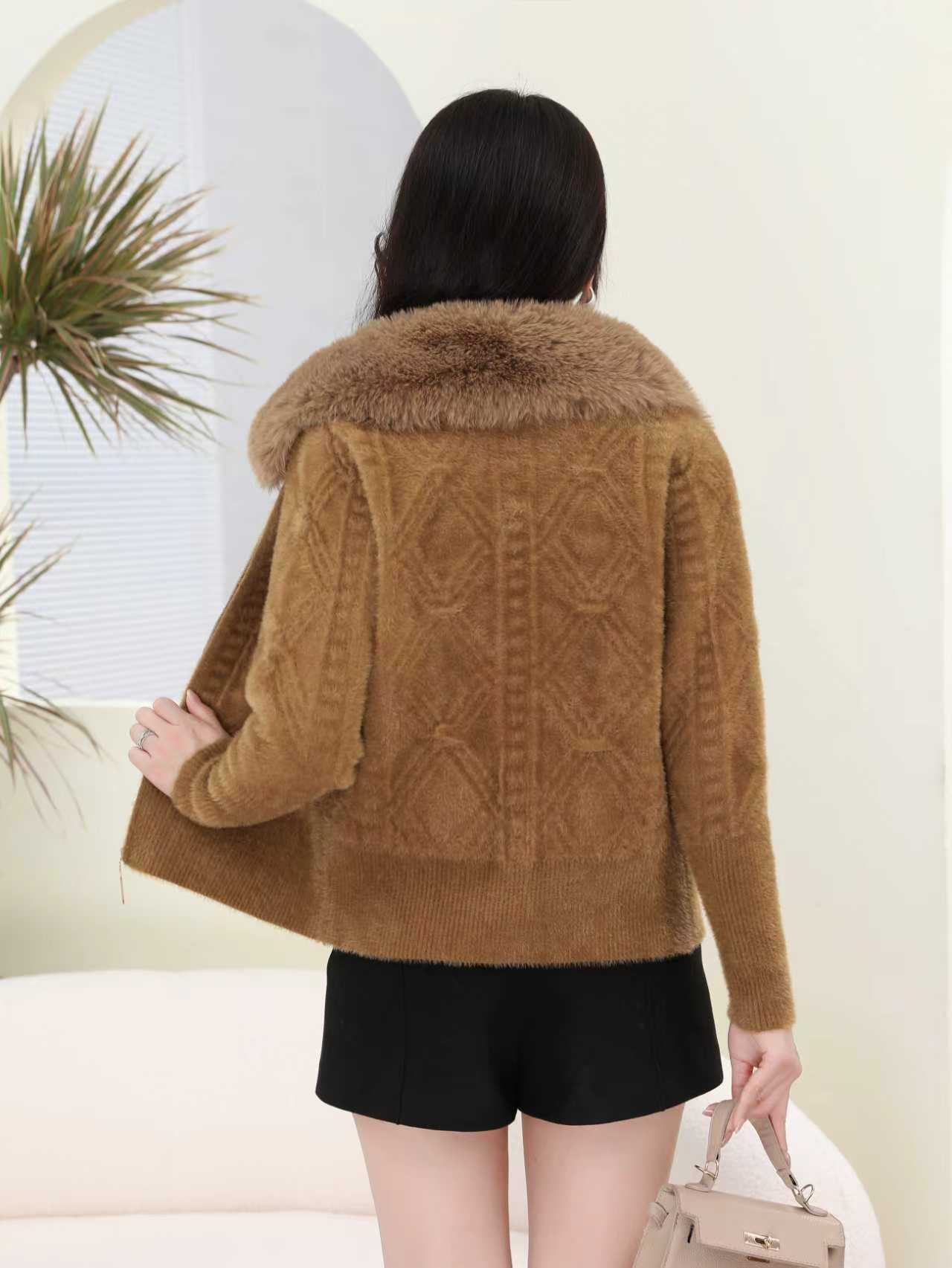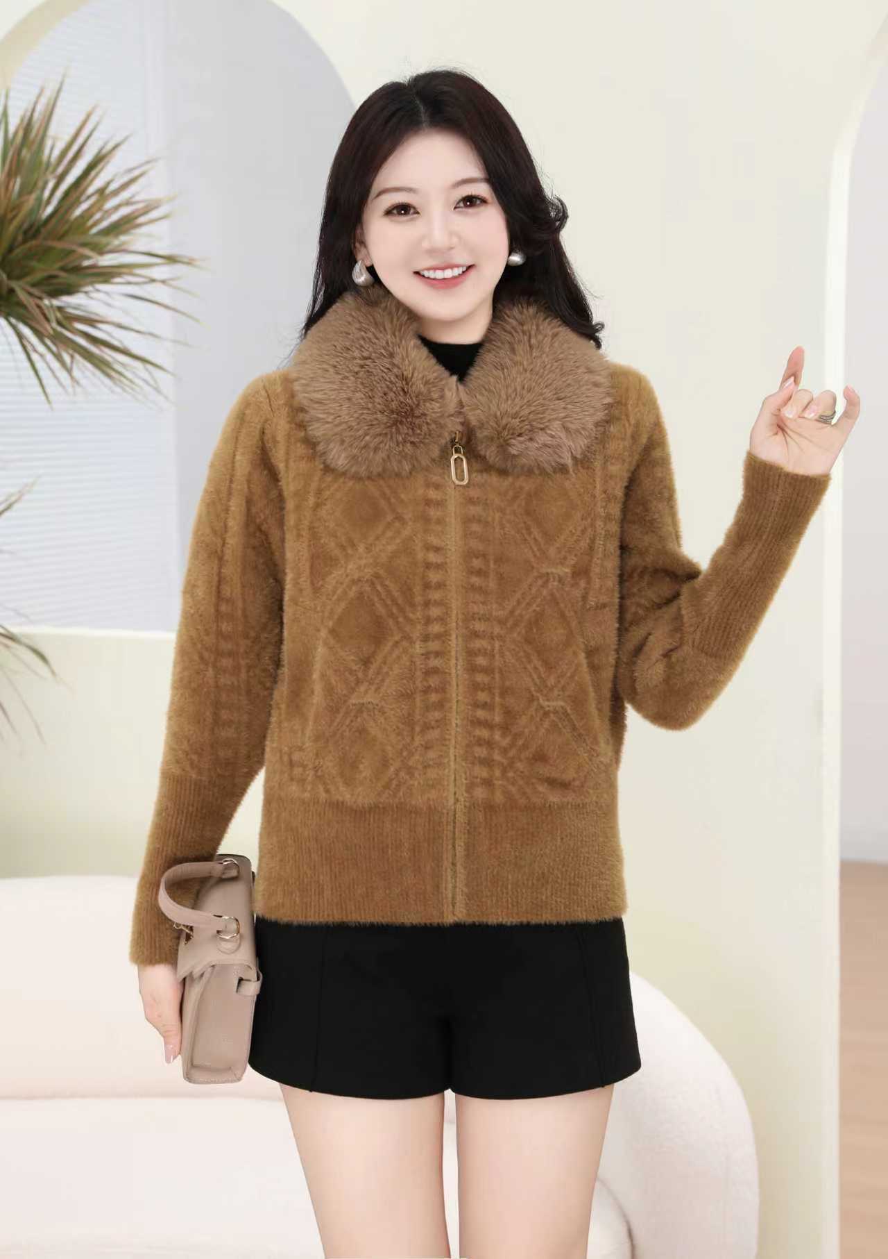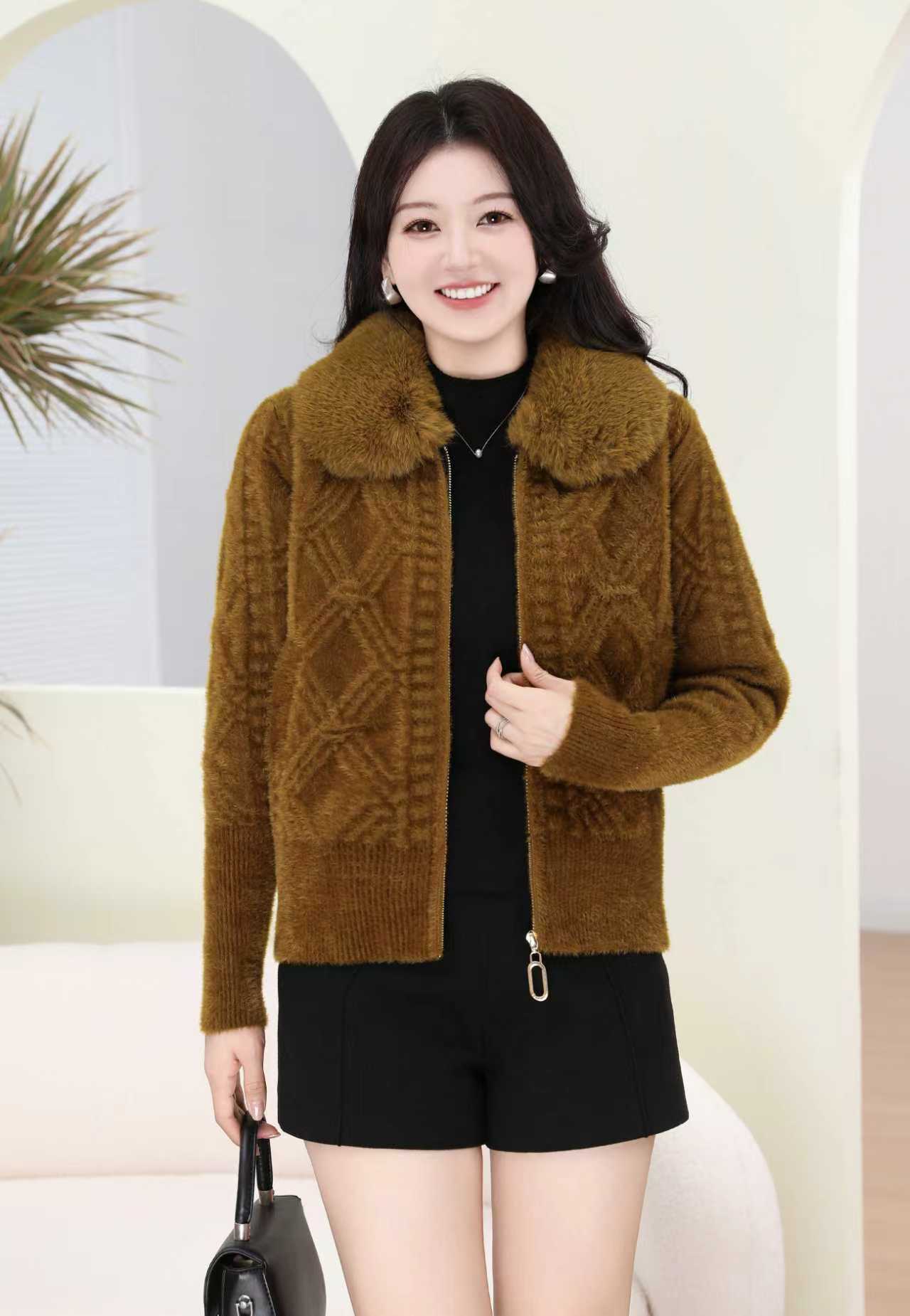 外贸出口中老年秋冬女水貂绒外套中长毛领绣花大衣妈妈加绒加厚