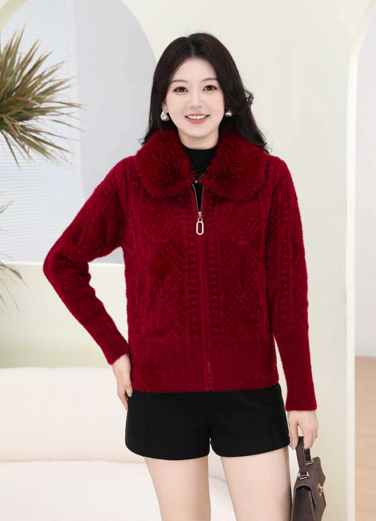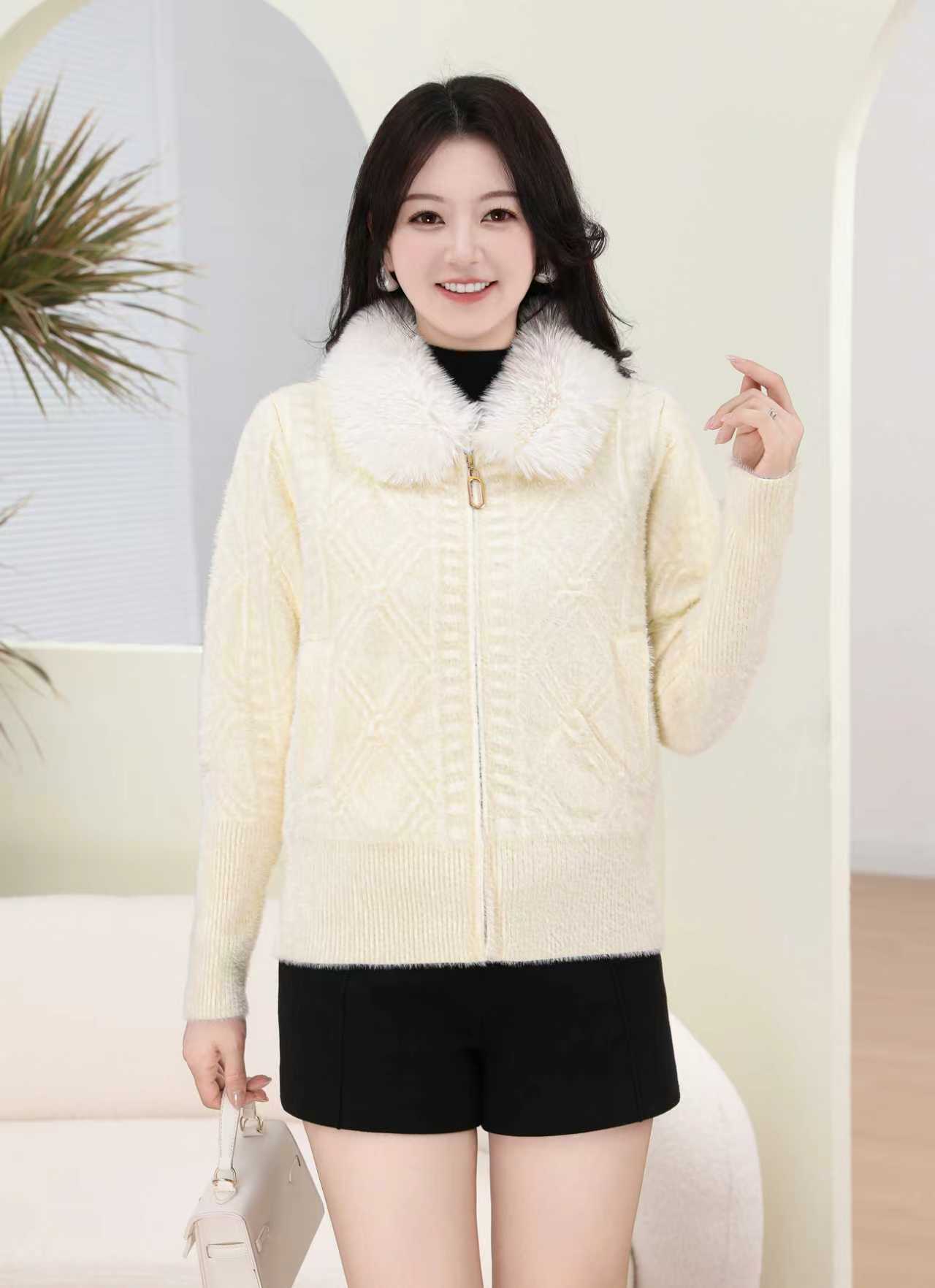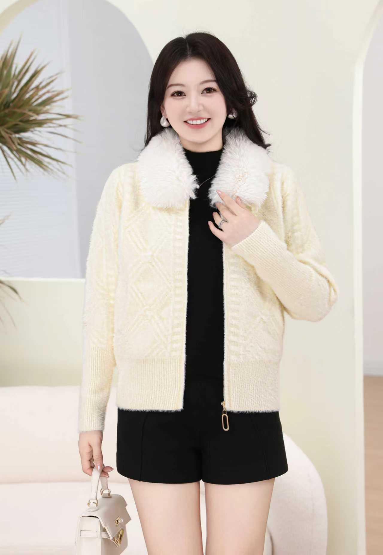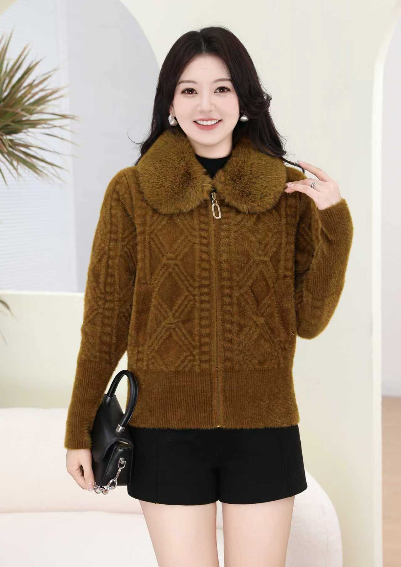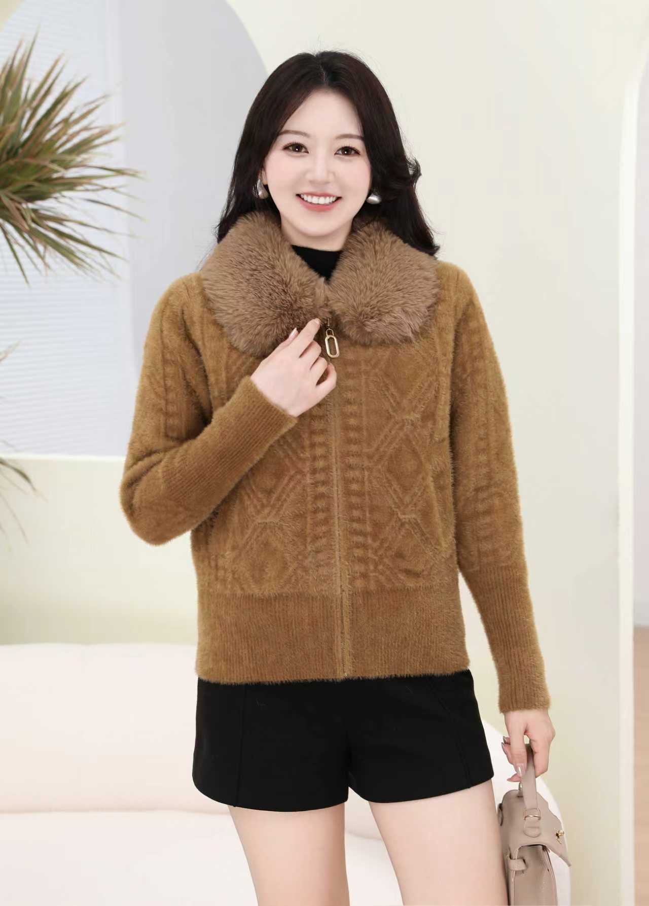 外贸出口中老年秋冬女水貂绒外套中长毛领绣花大衣妈妈加绒加厚