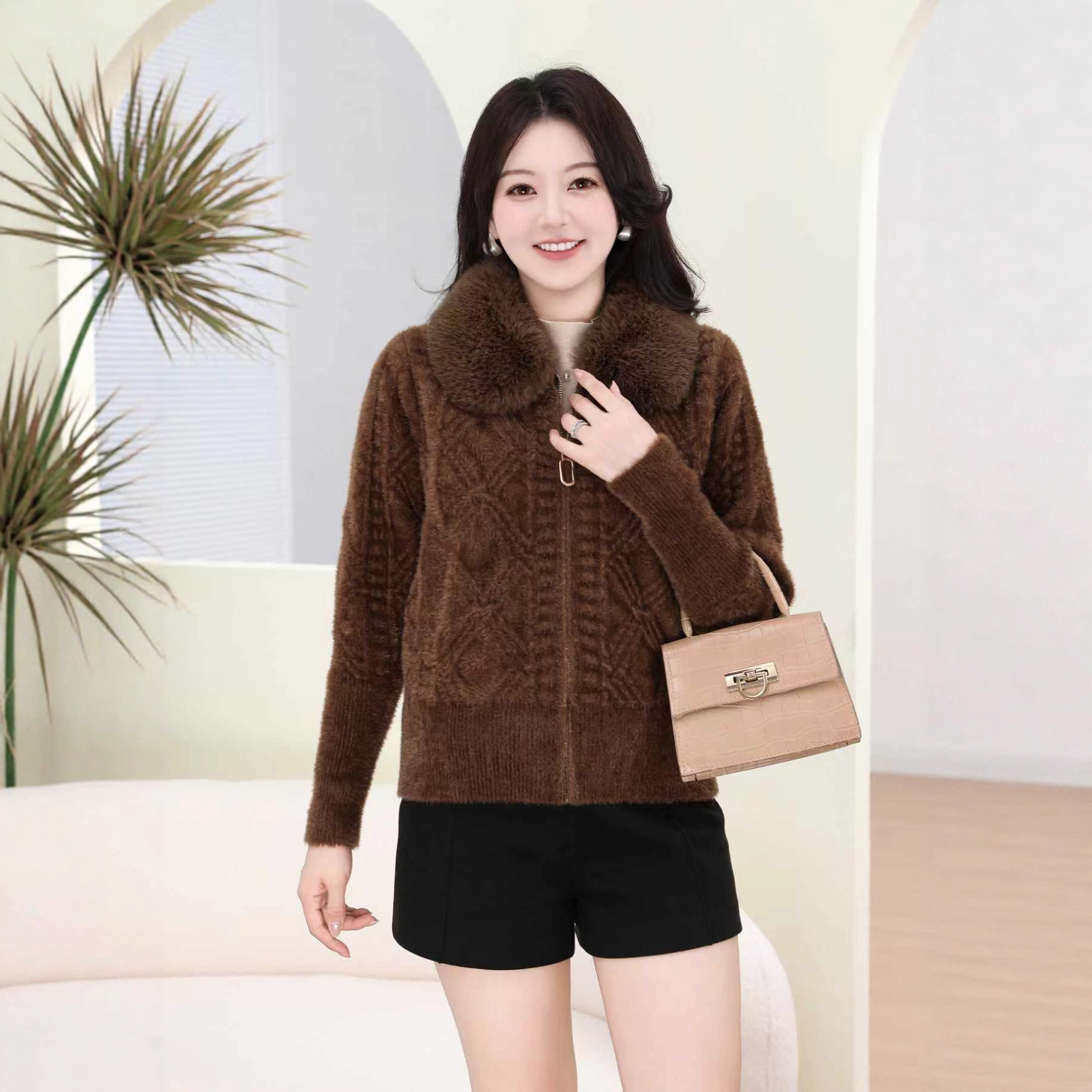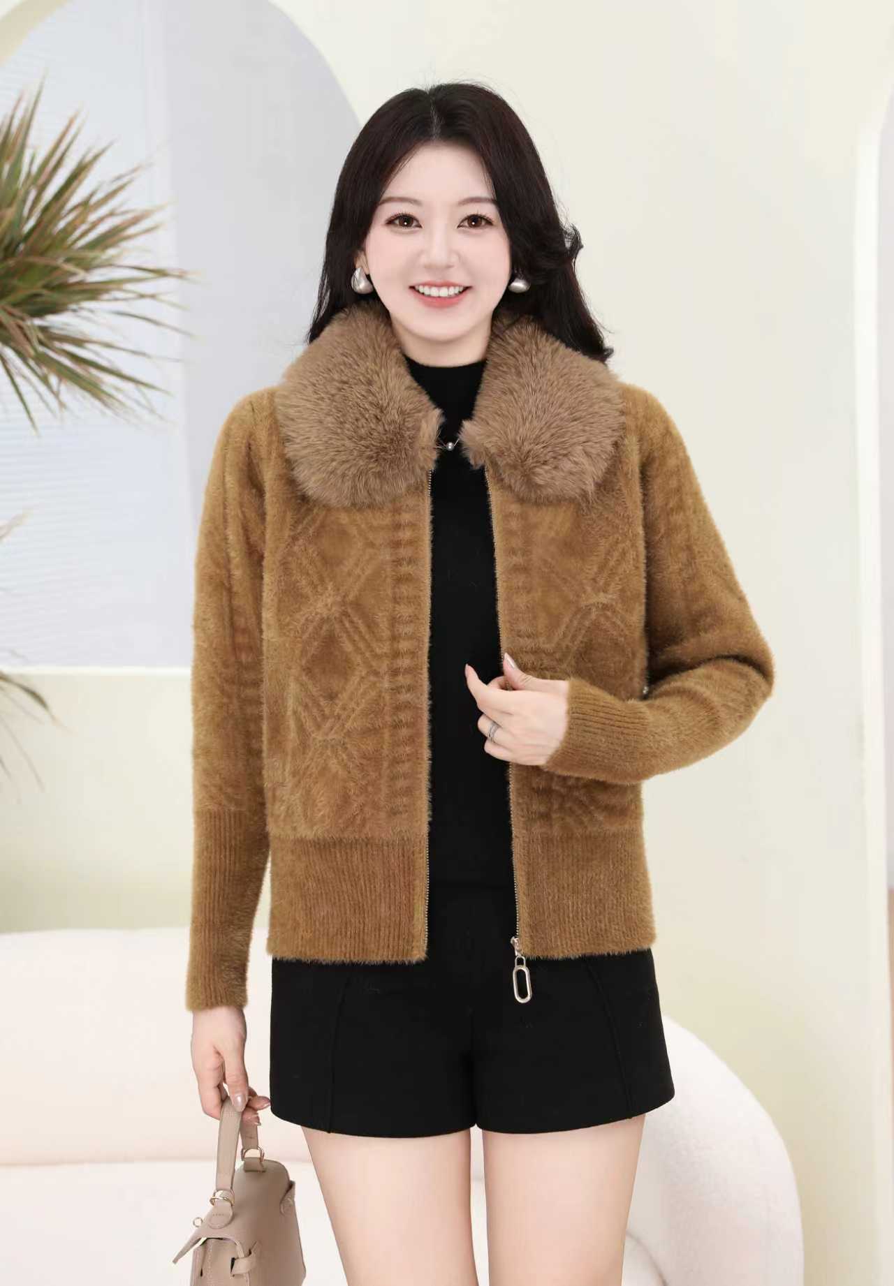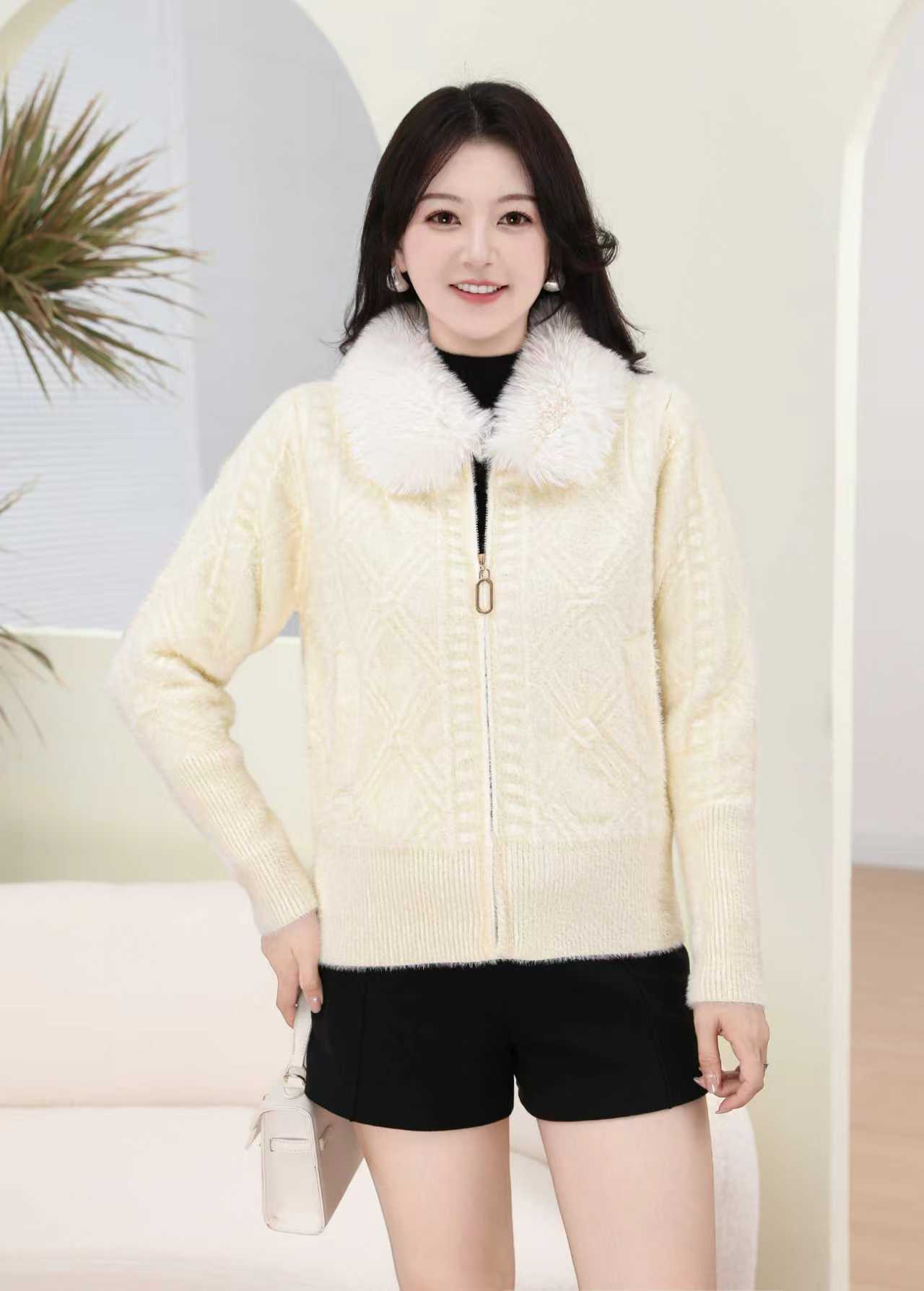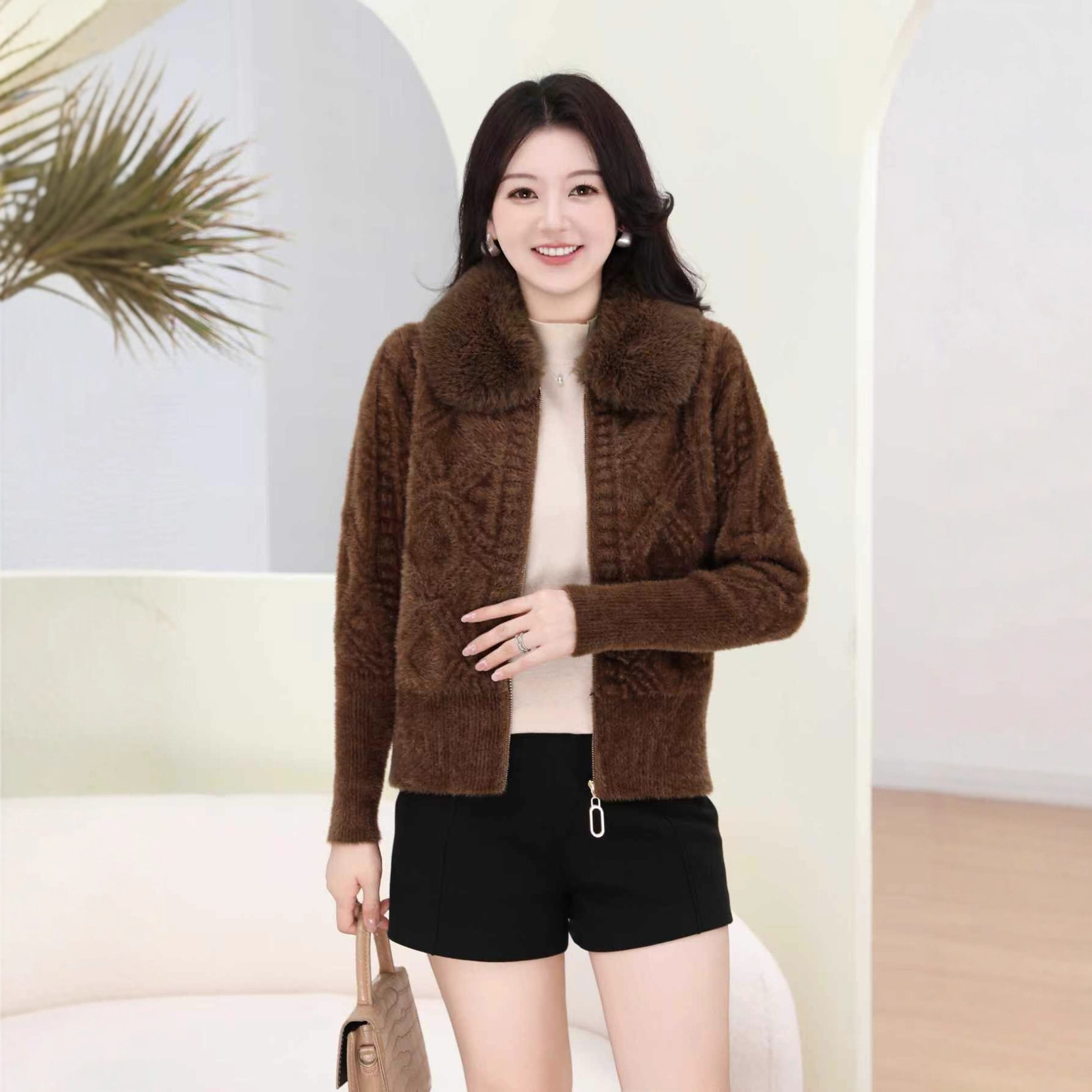 外贸出口中老年秋冬女水貂绒外套中长毛领绣花大衣妈妈加绒加厚