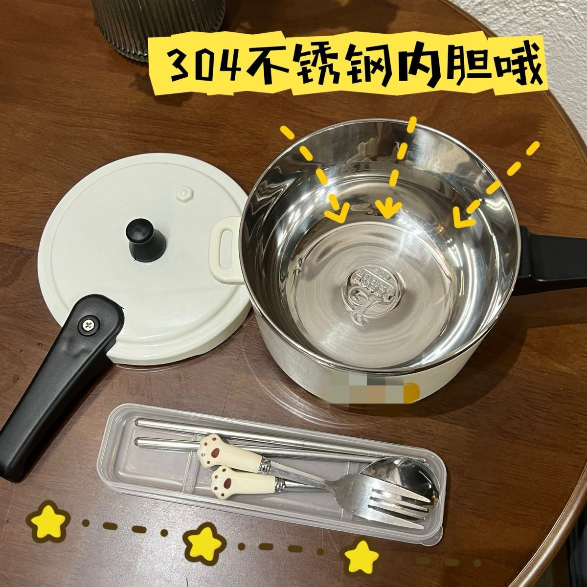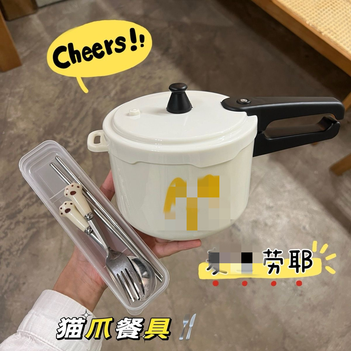 颜色 高压锅型泡面碗+贴纸,高压锅型泡面碗+贴纸+餐具