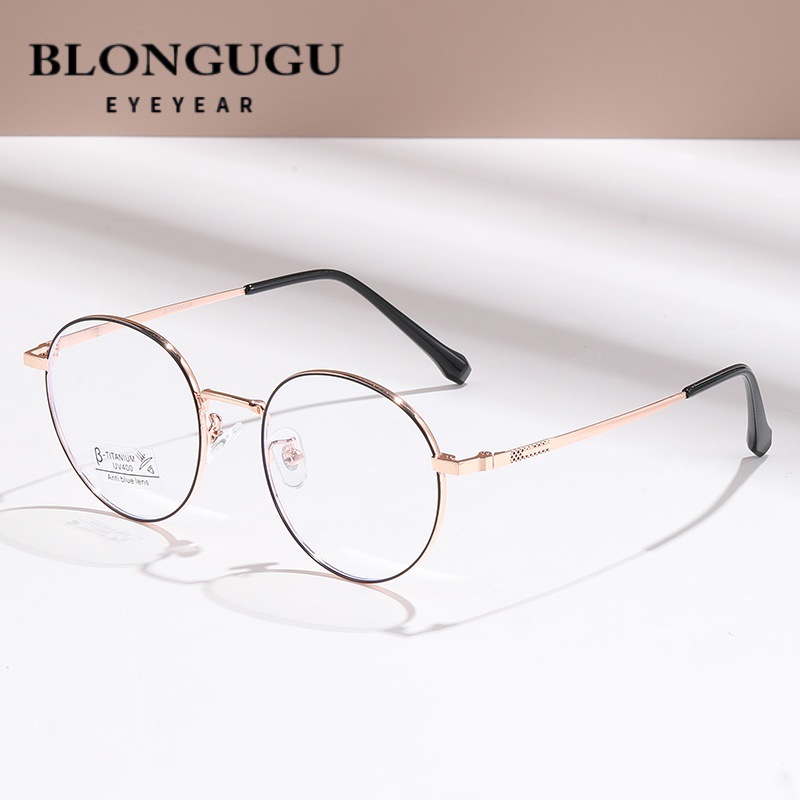 新款防蓝光眼镜框金属圆形平光镜男女高颜值文艺时尚复古可配近视