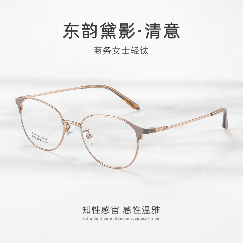 超軽量純チタン製眉掛けメガネ、女性用、高級感、小顔効果、z028レトロチタンフレーム、丹陽製メガネ