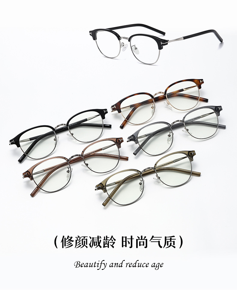 新品TR金属混拼日韩文艺眼镜框男大脸气质近视平光镜架女可配度数