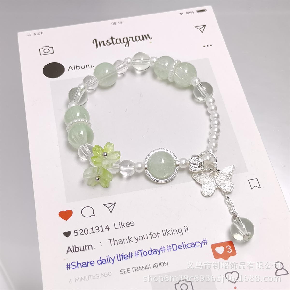 新款超仙森系蝶意蘑菇水晶手链女高颜值简约百搭学生手串景区热销