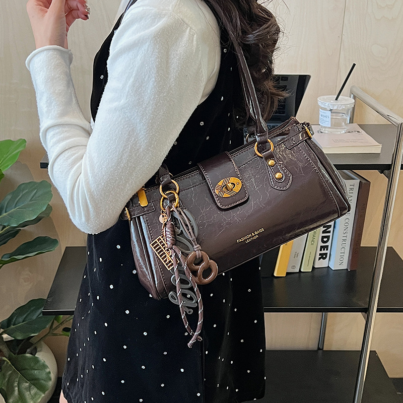 跨境女包2025新款时尚百搭复古单肩斜挎包高级感通勤手提保龄球包