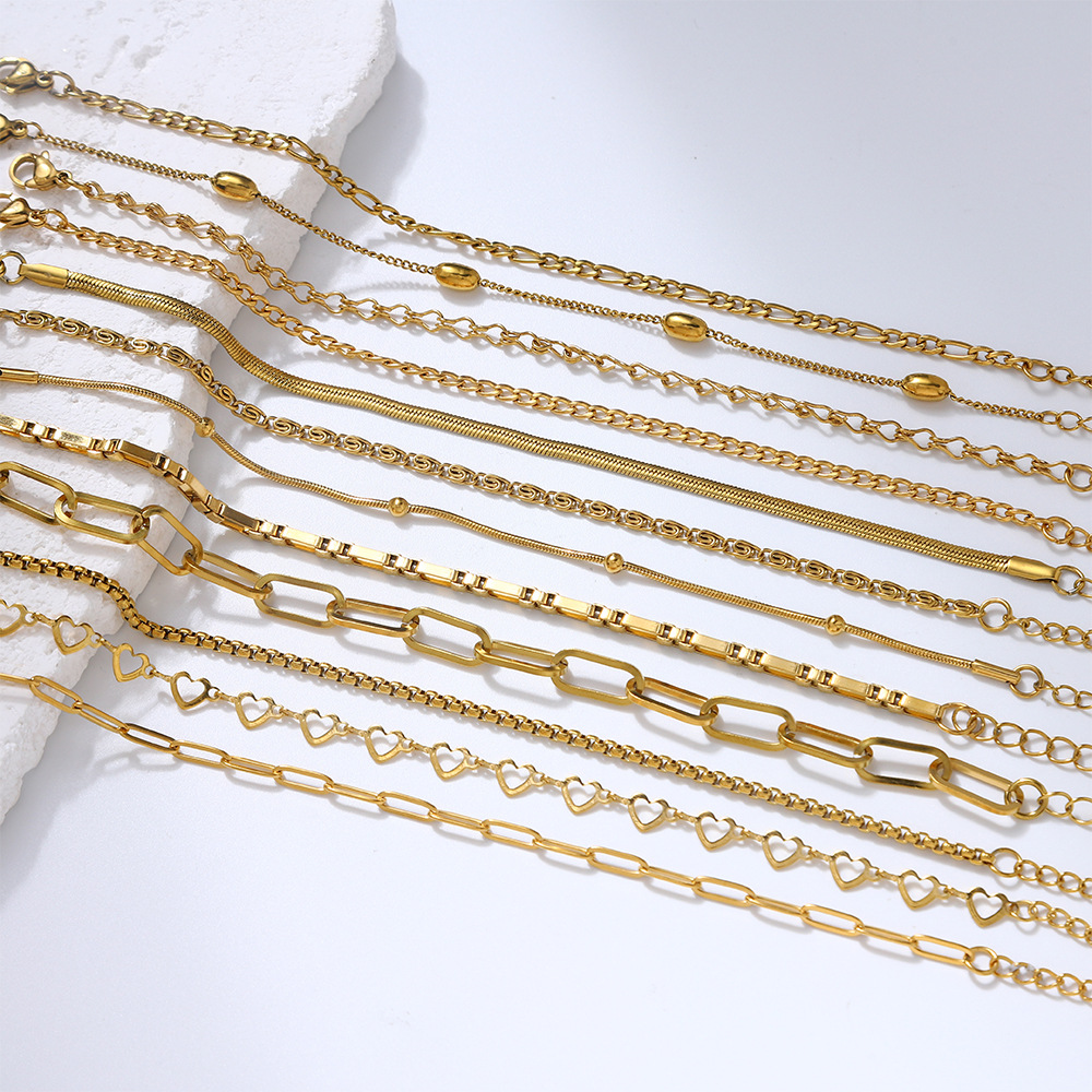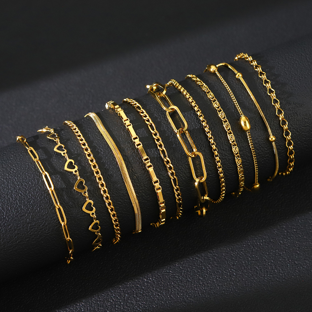 ステンレスブレスレット 真空電気メッキ炉で18Kゴールドを施した万能でシンプルなデイリーベーシックブレスレット 色持ちの良いハンドアクセサリー