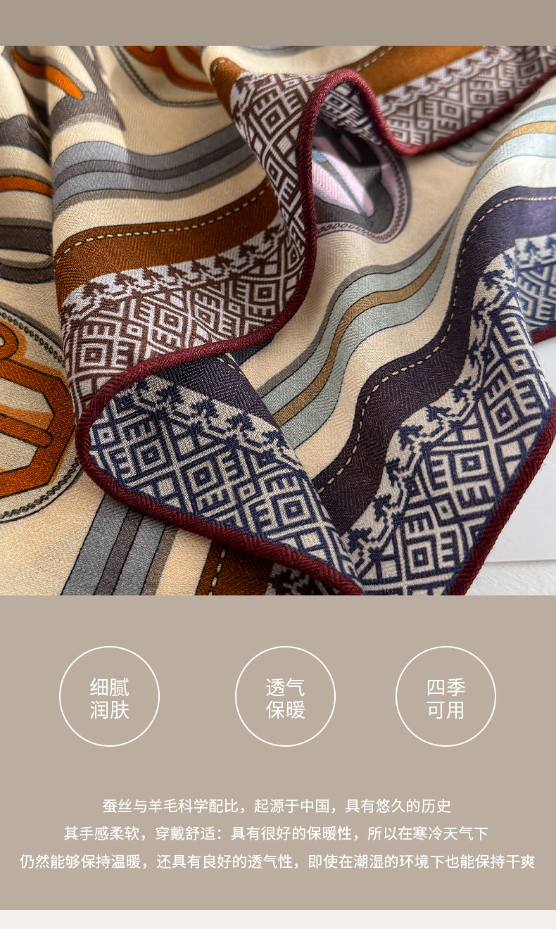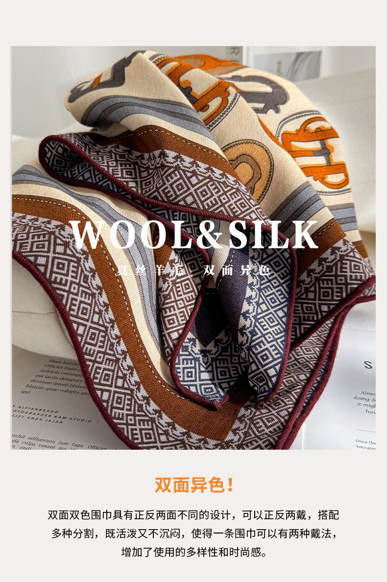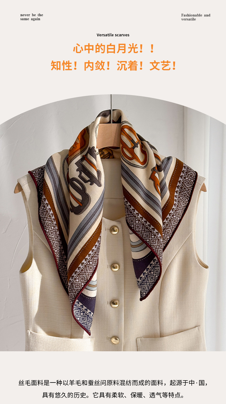 雅致古典氛围感!轻奢丝毛围巾女春秋多功能真丝羊毛方巾装饰领巾