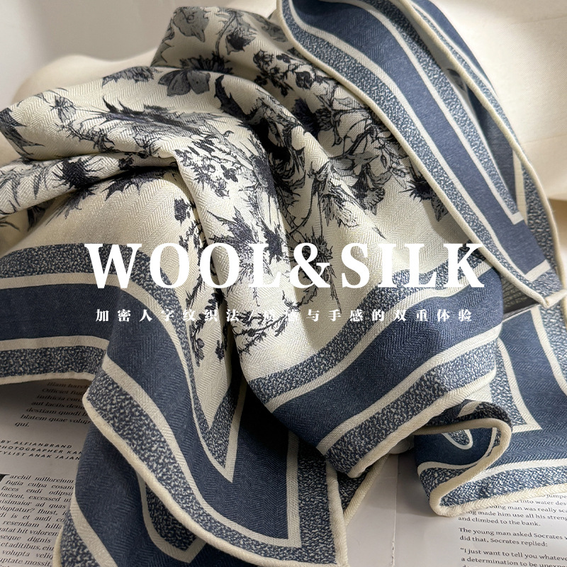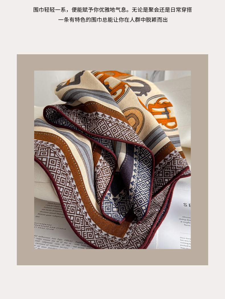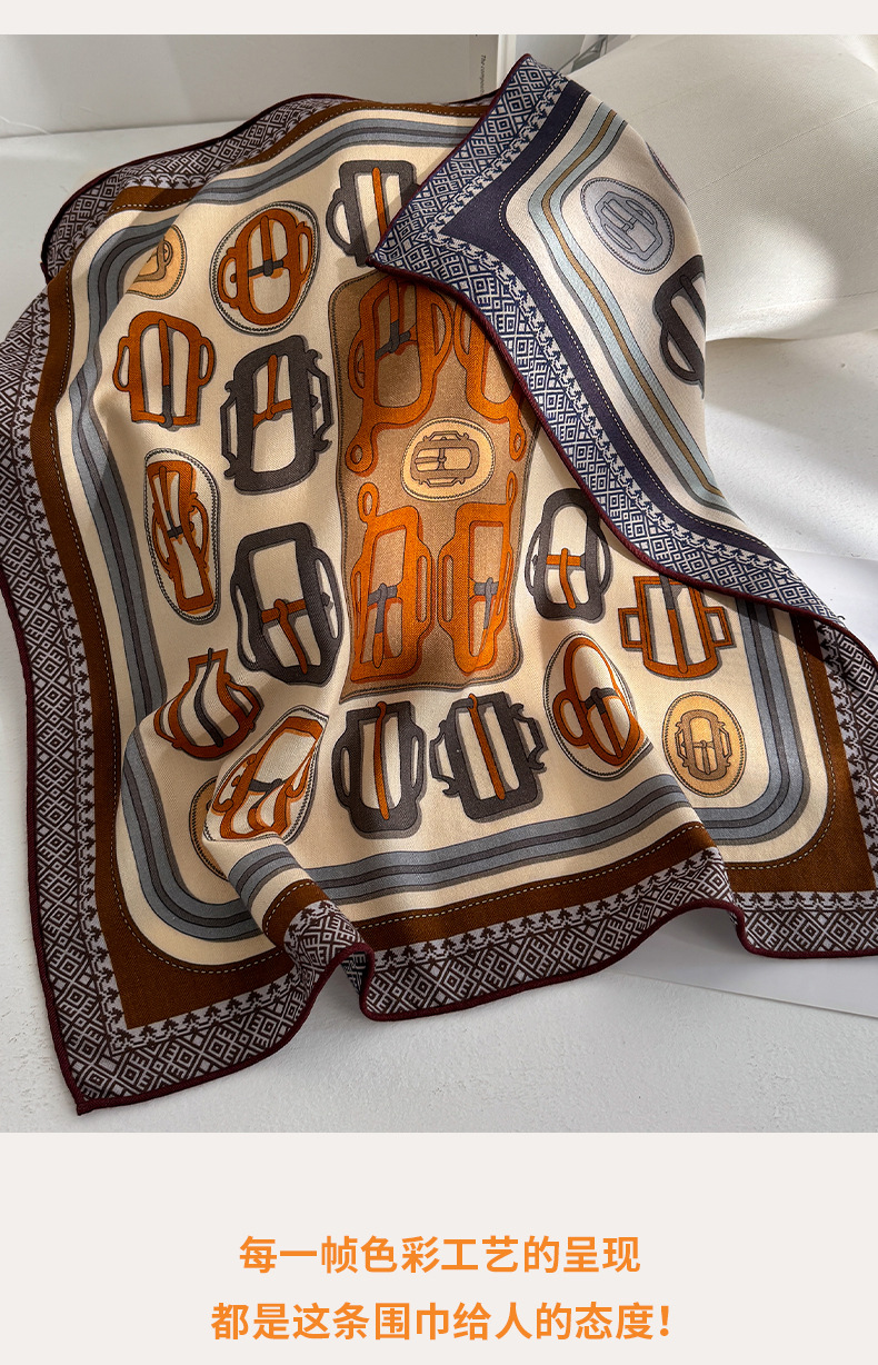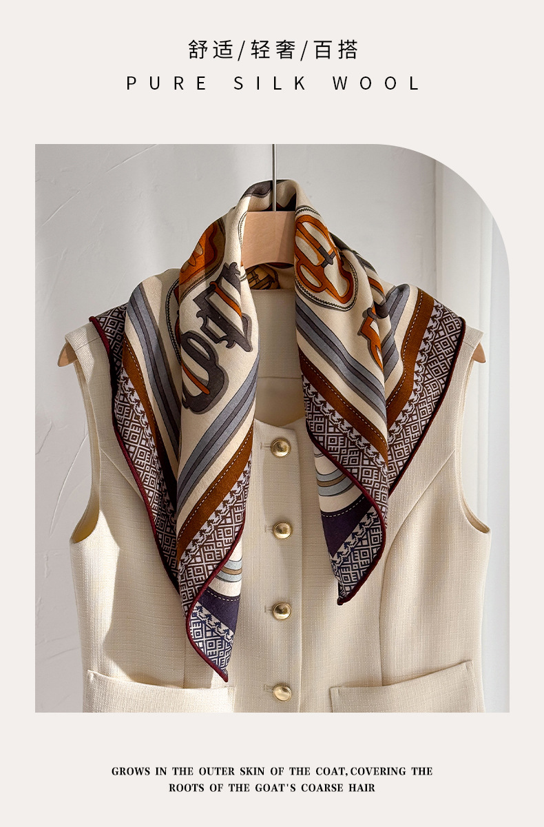 雅致古典氛围感!轻奢丝毛围巾女春秋多功能真丝羊毛方巾装饰领巾
