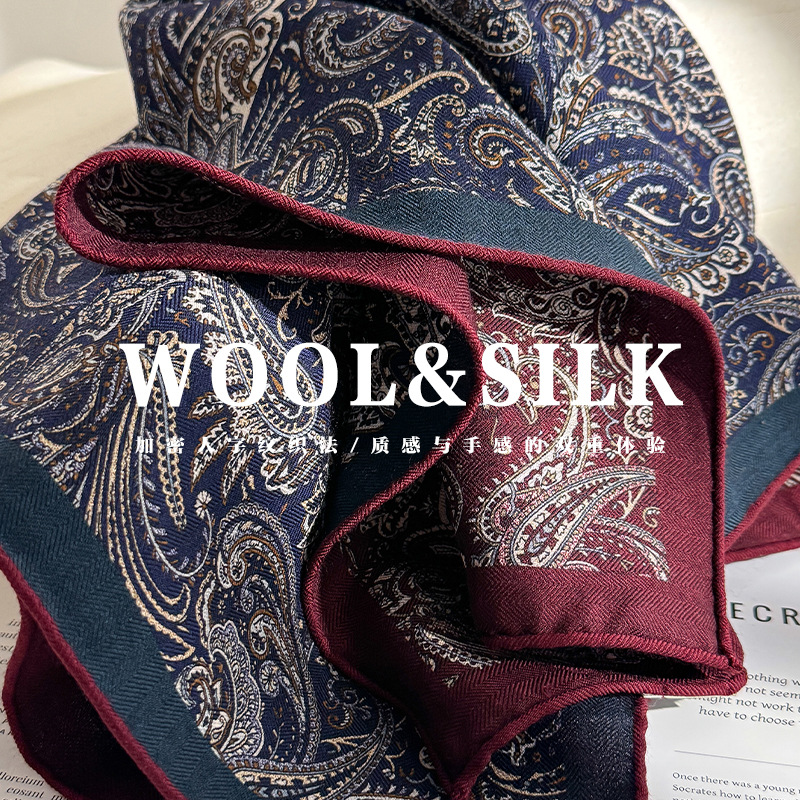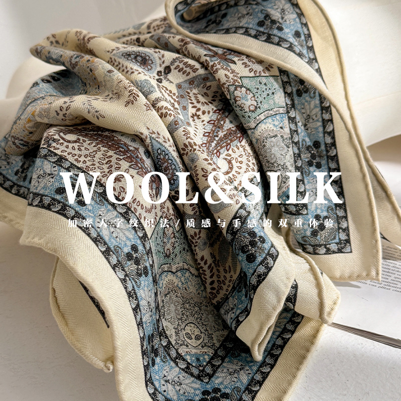 复古佩斯利~真丝羊毛围巾女秋冬季丝毛丝巾高级感系脖领巾小方巾