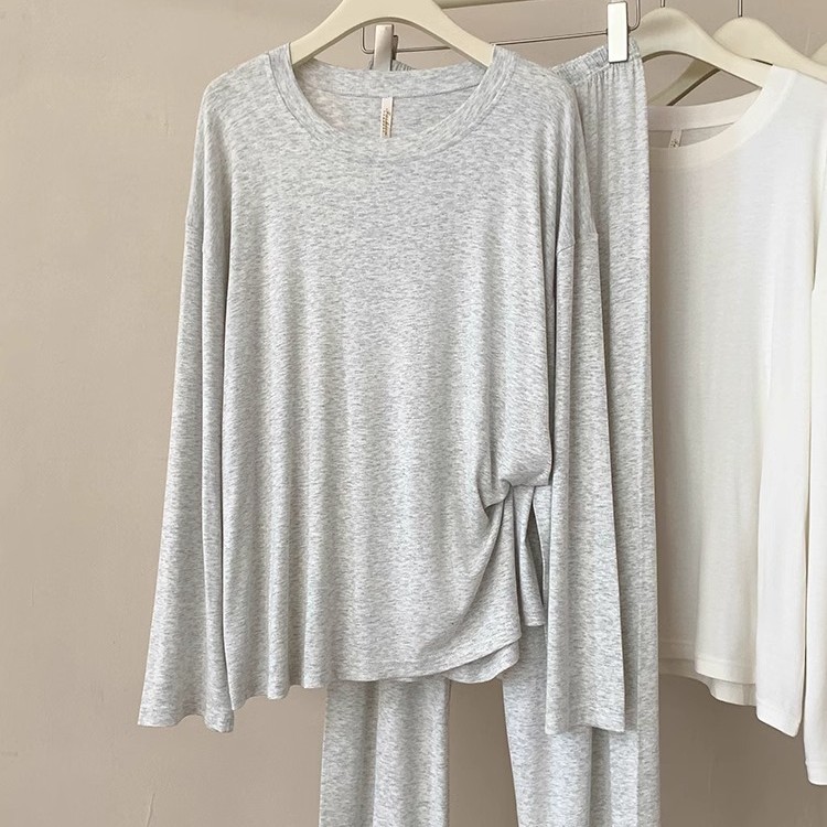 モーダルの大きいサイズのパジャマの女性の春と秋の新型のカジュアルでシンプルな純色の長袖の快適な通気性の部屋の服のスーツ