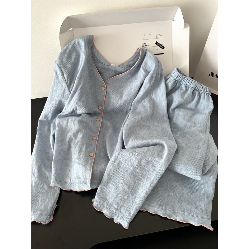 【现货】高级感纯色睡衣女春秋2025新款长袖长裤家居服套装可外穿