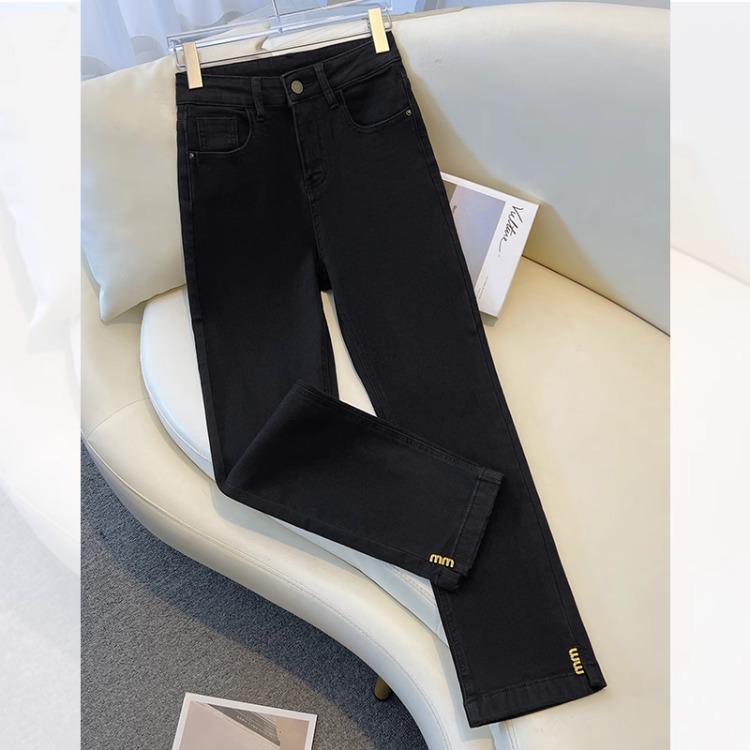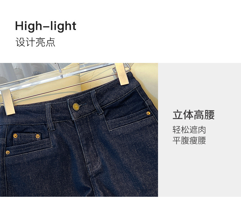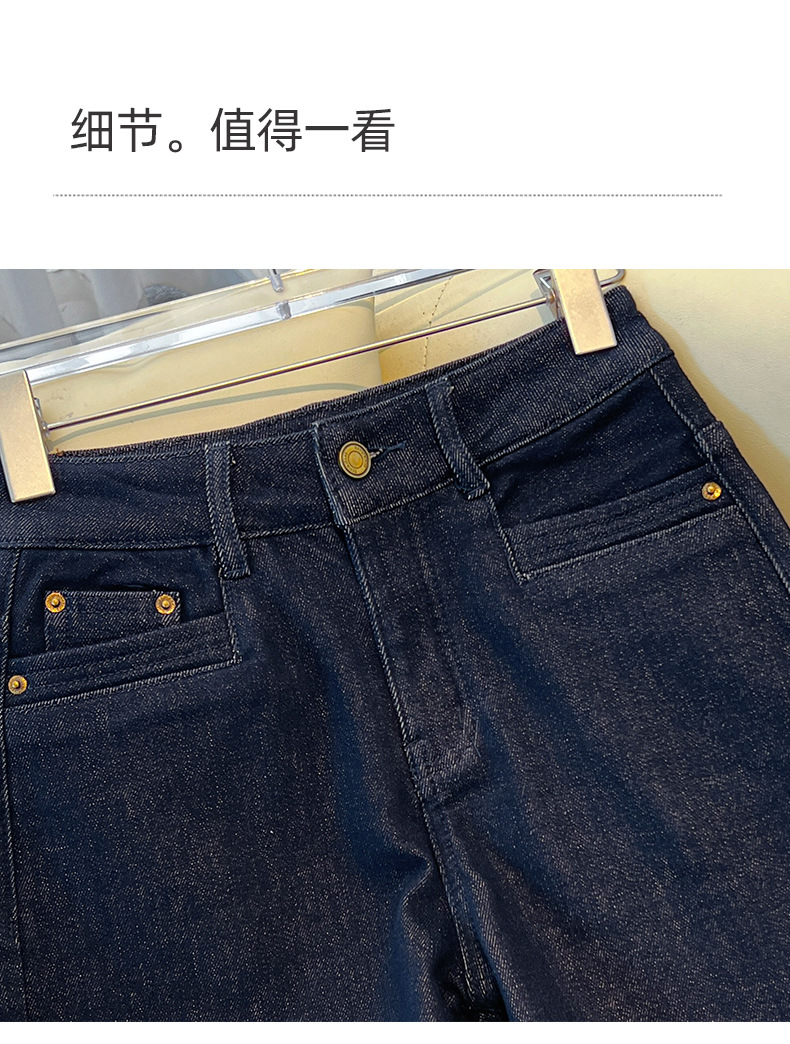 新中式風ストレートジーンズ2025年春秋新作人気商品、切り替えデザイン、小柄さん向け九分丈、ボタン付きストレートパンツ