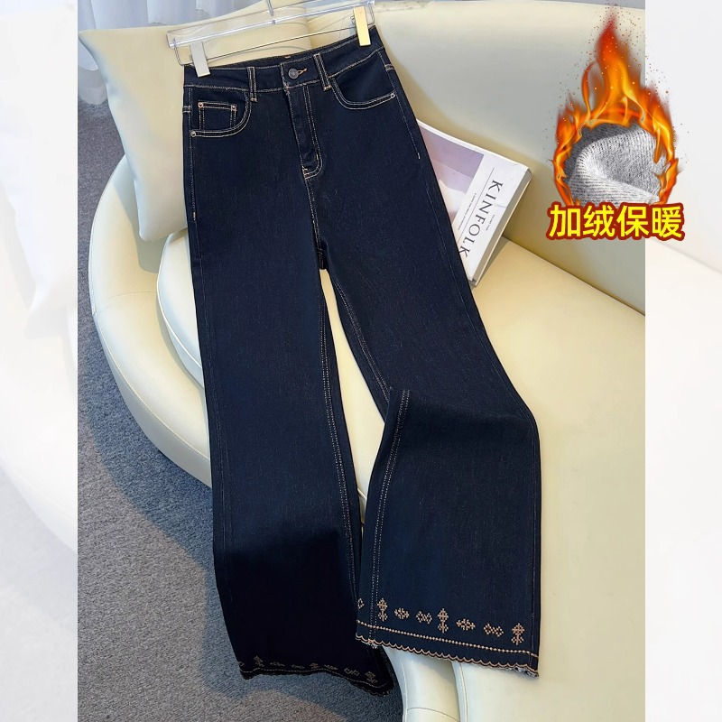 轻奢丹宁蓝微喇牛仔裤女秋冬季2025新款刺绣气质巨好看拖地直筒裤