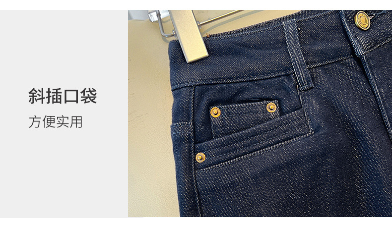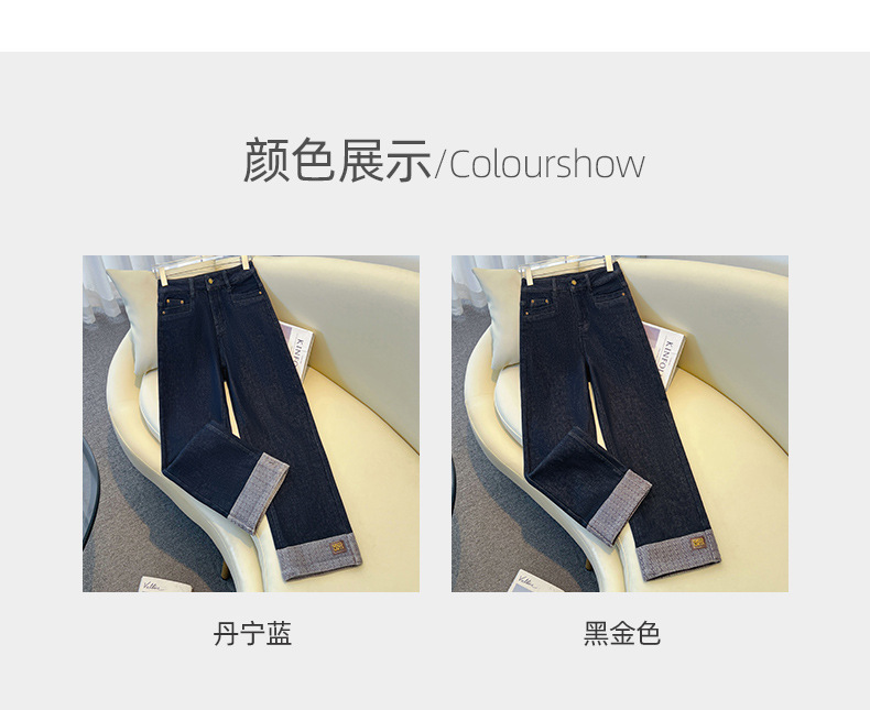 丹宁蓝弯刀裤微喇裤女秋冬季2025新款加绒窄版九分裤高级感直筒裤