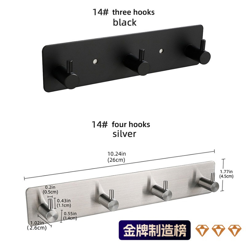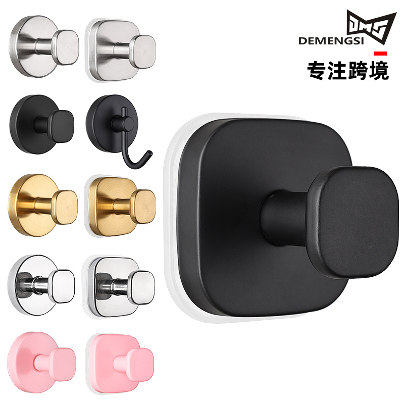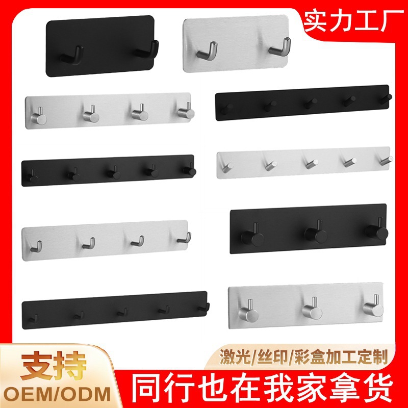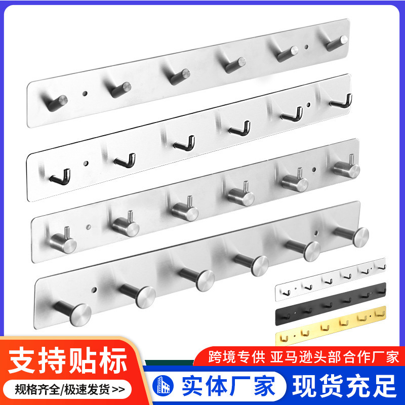 跨境免打孔不锈钢挂钩卧室卫生间门后衣帽钩橱柜壁挂排钩挂衣钩