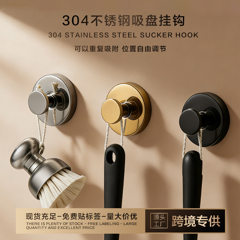 跨境不锈钢吸盘挂钩强力免打孔家用浴室宿舍厨房挂衣单个钩子批发