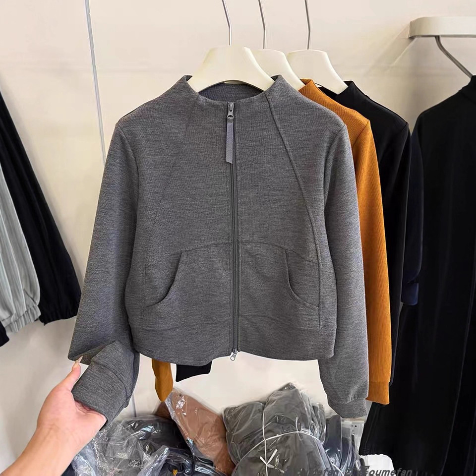 欧洲站2025秋季立领飘带拉链落肩插肩袖压线休闲长袖卫衣开衫上衣
