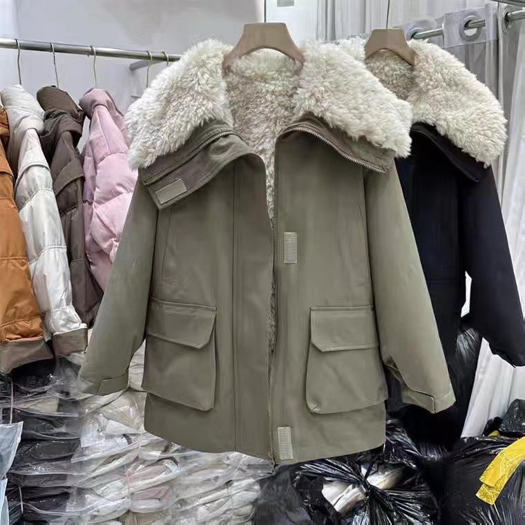 超きれいな工装風羊小毛綿服綿服ゆるい保温コートの中の長いコートの女性2024冬
