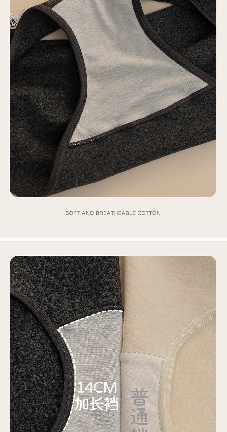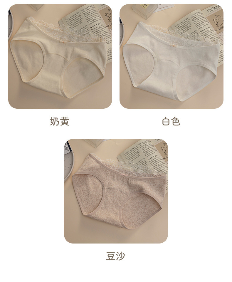 纯欲风纯棉内裤女10A抑菌加长裆蕾丝边包臀中腰全棉天然彩棉内裤