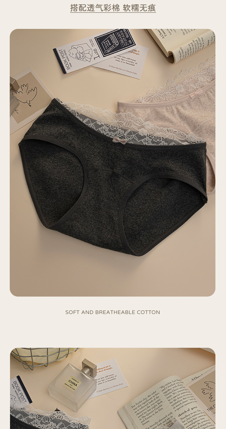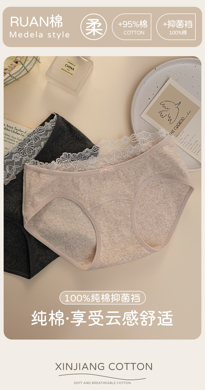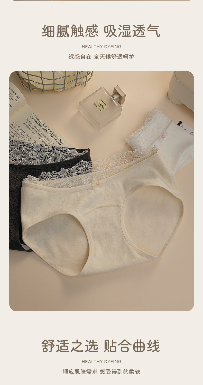蕾丝花边纯棉内裤天然彩棉女生10A抗菌舒适纯棉提花三角裤加长裆