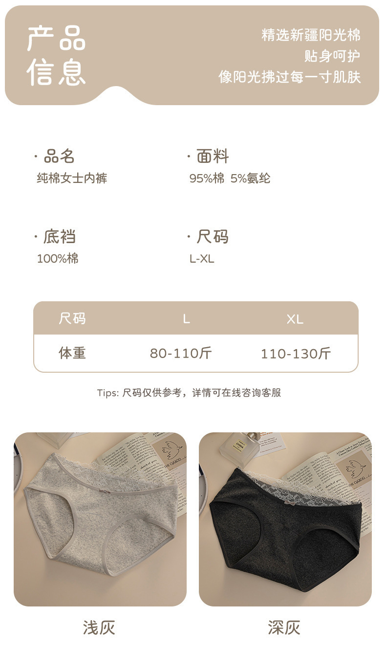 10A抗菌新疆純綿さん下着レースの辺が快適な中腰純綿股A類赤ちゃん綿下着女
