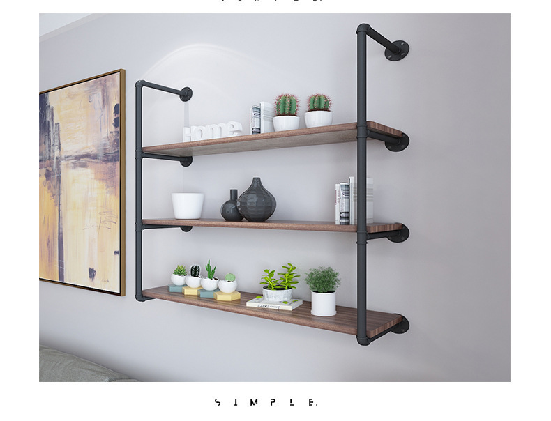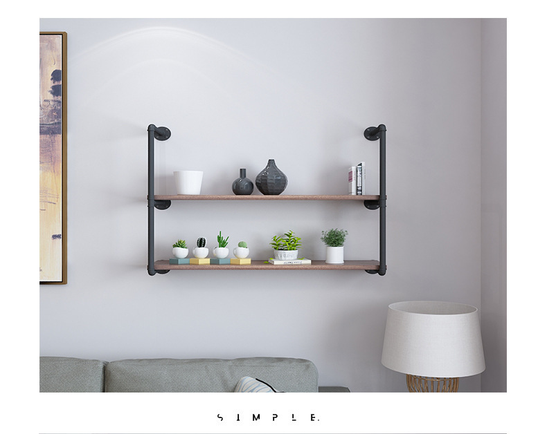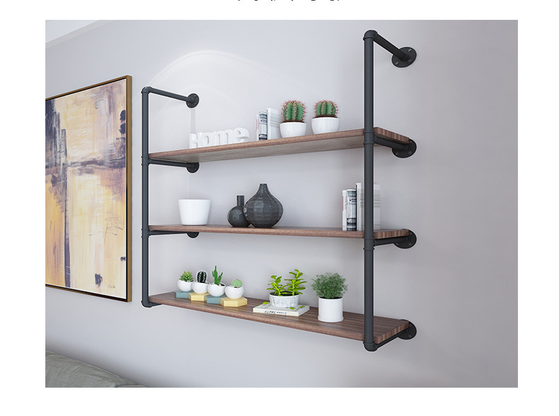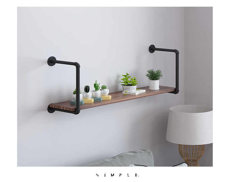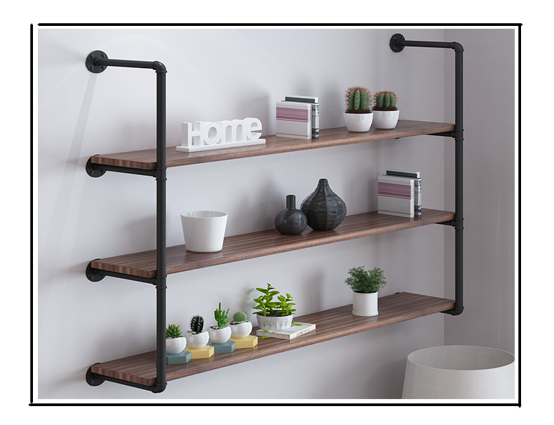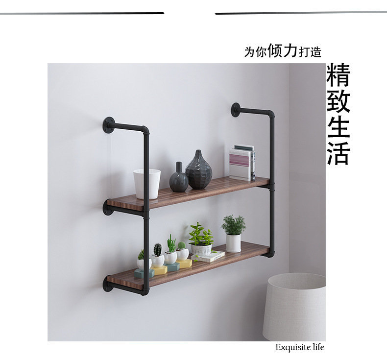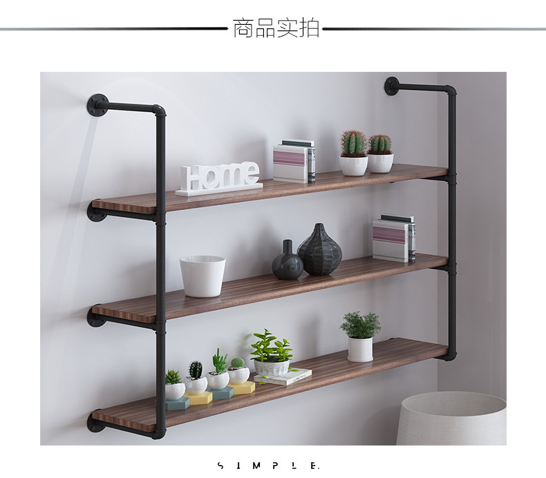 水管置物架工业风餐厅装饰一字隔板多层收纳板书店木质墙上置物架