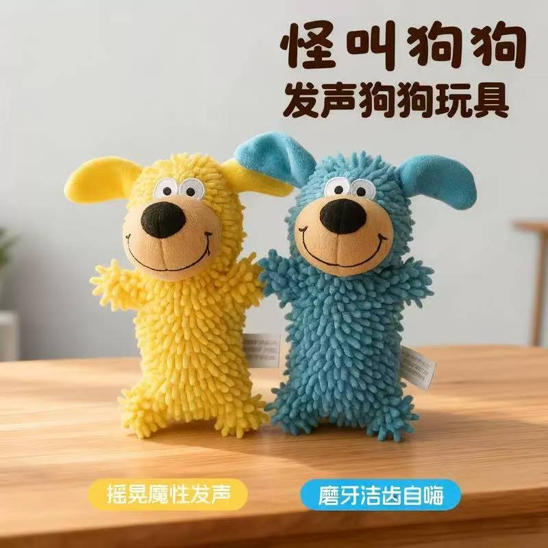 跨境狗狗玩具发声磨牙洁齿互动陪伴狗玩具自嗨毛绒拖把宠物玩具