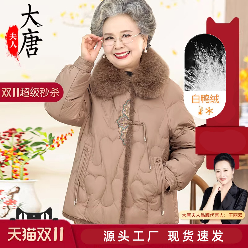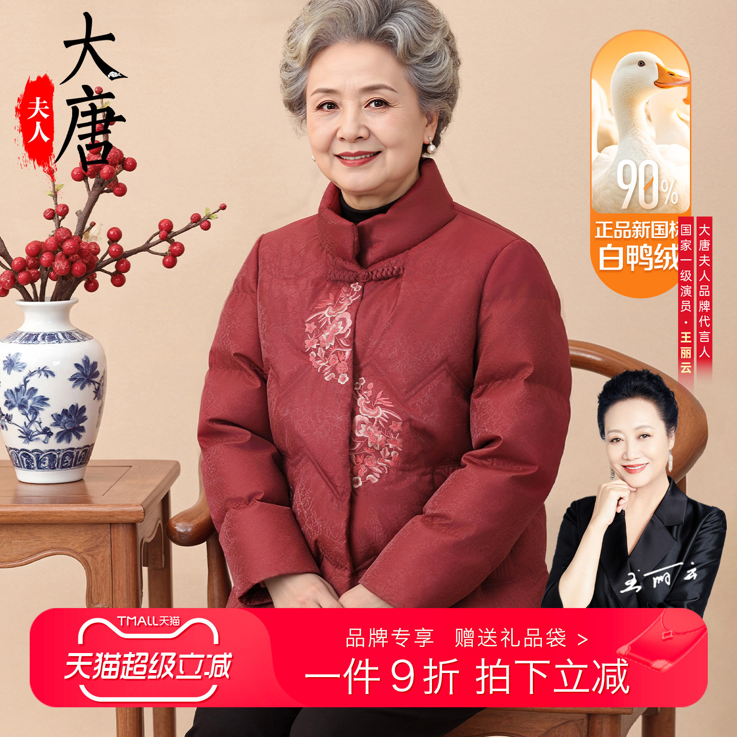 大唐夫人奶奶冬装羽绒服90%白鸭绒中老年人老妈妈外套老太太衣服