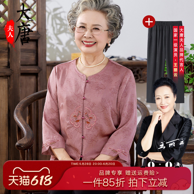 中高年のシャツの女性のおばあさんの夏服のシャツの老人の高級な服の老年のお母さんの春秋の服の喜姑の唐の服