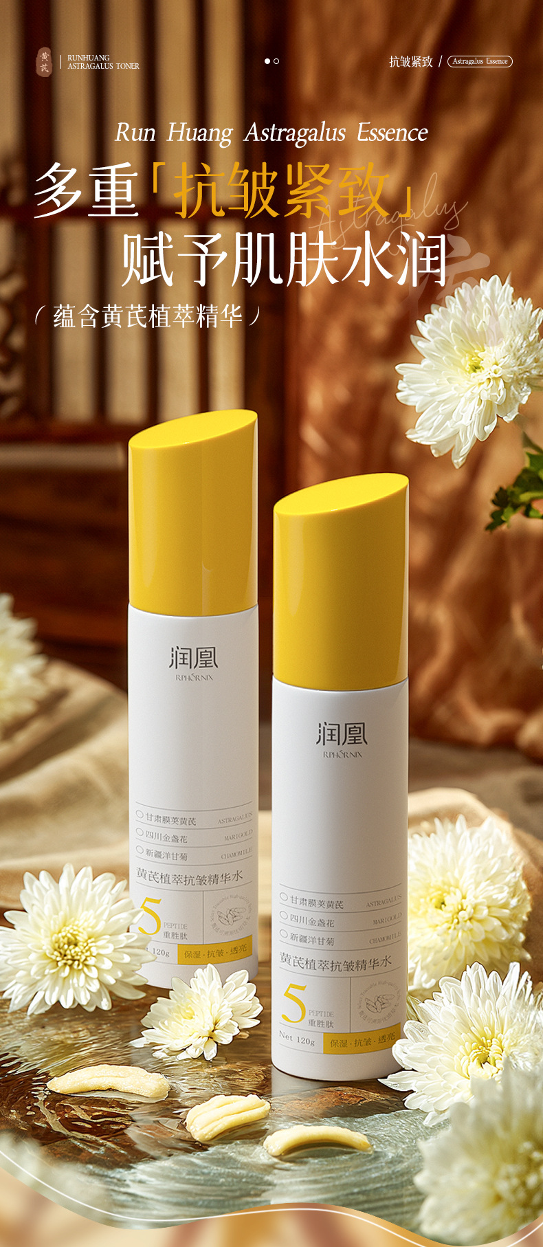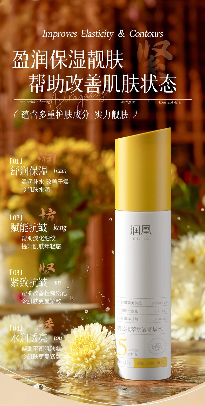 润凰黄芪植萃抗皱精华水沁润补水保湿嫩肤淡化细纹紧致精华爽肤水