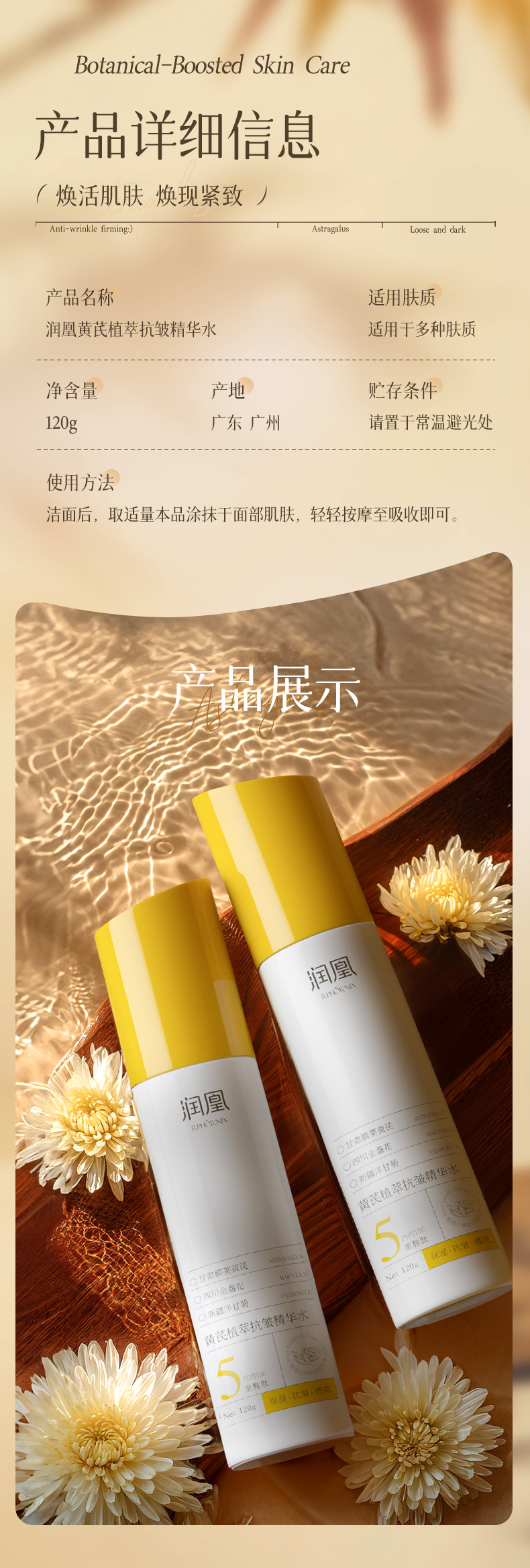 产品名称 润凰黄芪植萃抗皱精华水