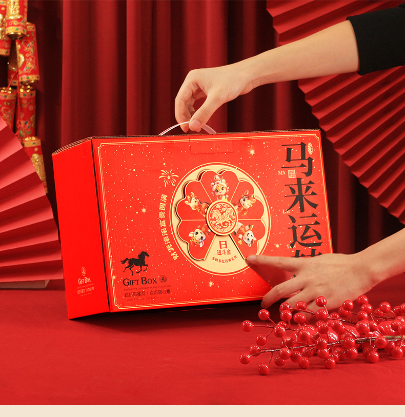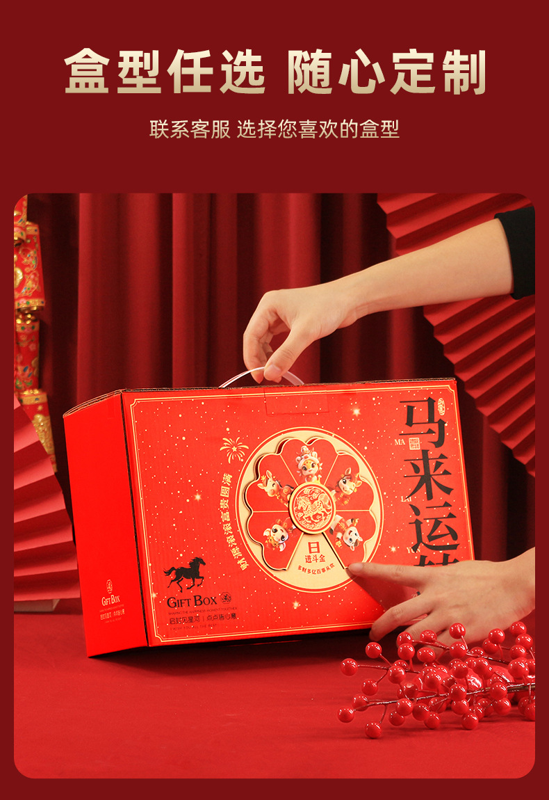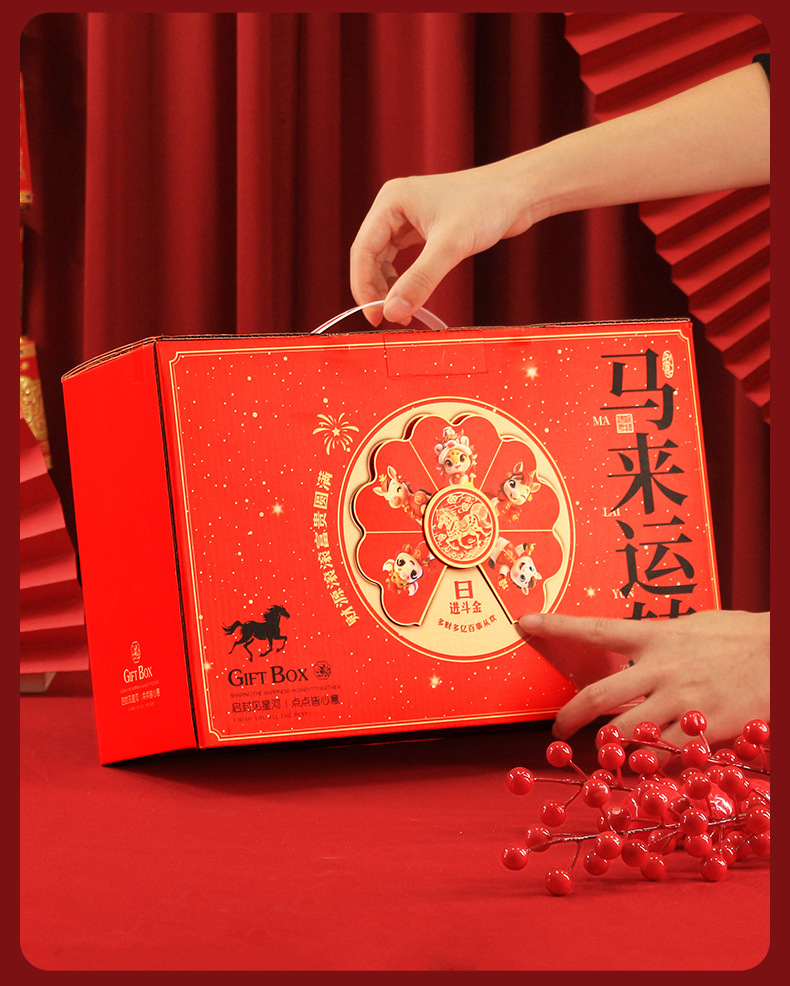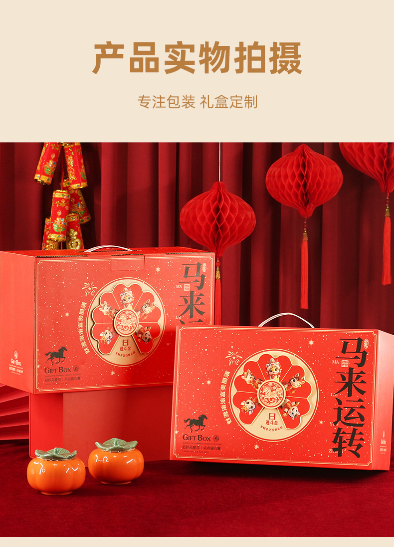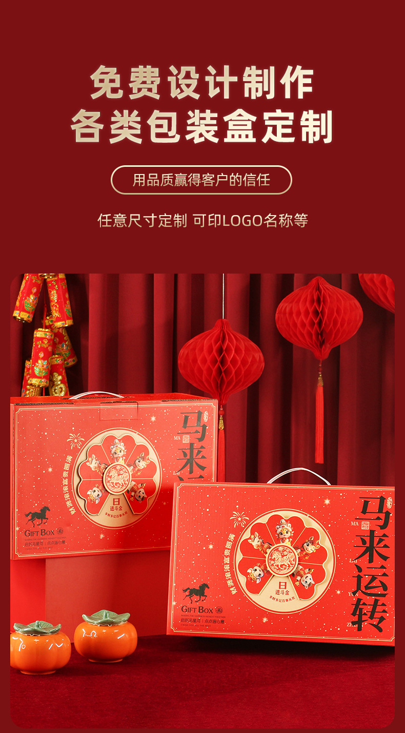 马年春节年货礼盒空盒定制礼品包装盒高端包装彩盒新年手提礼盒