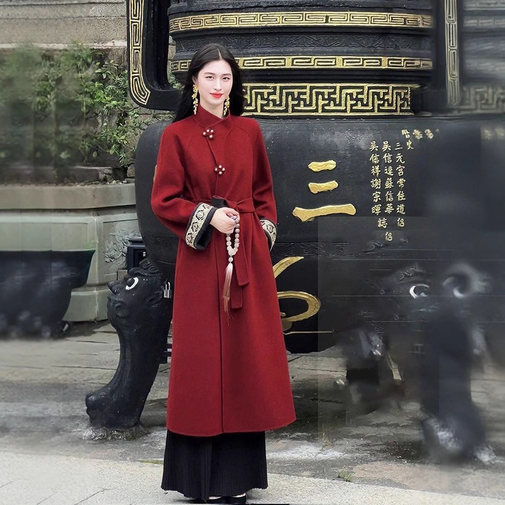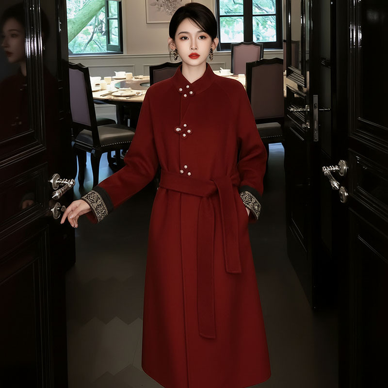 新中国式高級重工刺繍両面着コート2025冬新型国風ロングコート女性MX143