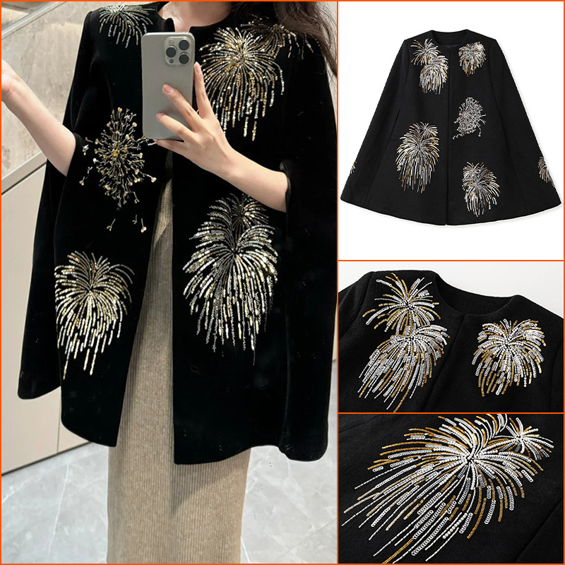 2025秋冬新作レトロ高定花火刺繍デザインゆるいストールファッション気質マントM9169