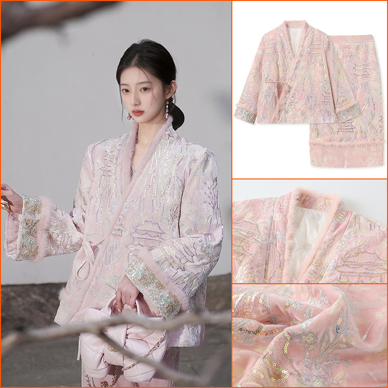 秋冬2025新型国風新中国式優雅気質高級スパンコール刺繍長袖コート綿服MY054
