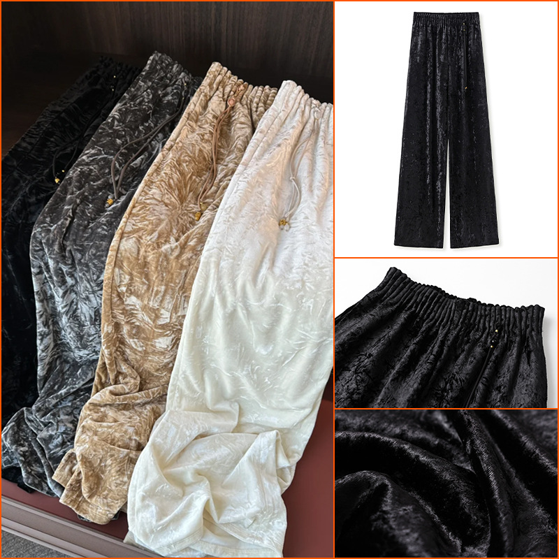 中国風の新しいスタイルのワイドレッグパンツ 2025 秋の新作ルーズハイウエストベルベットカジュアルストレートパンツ女性用 MX006