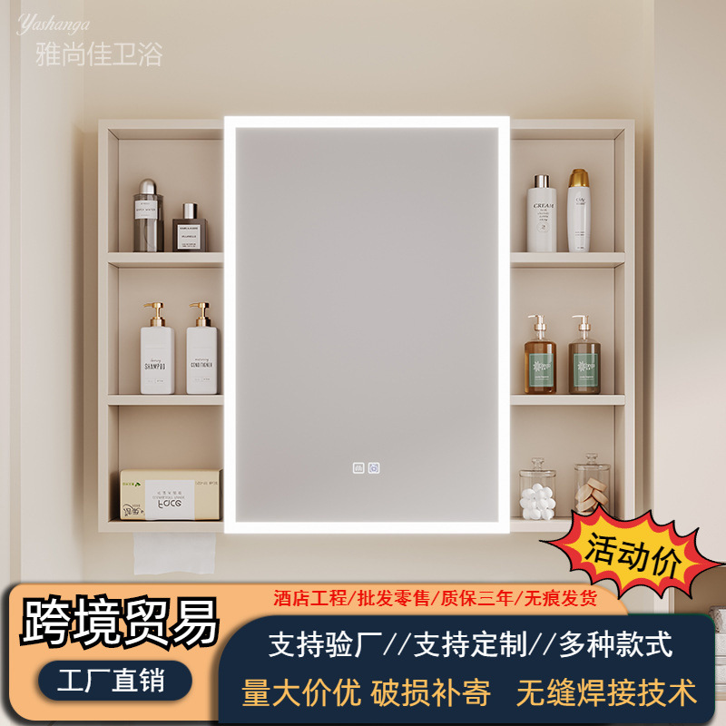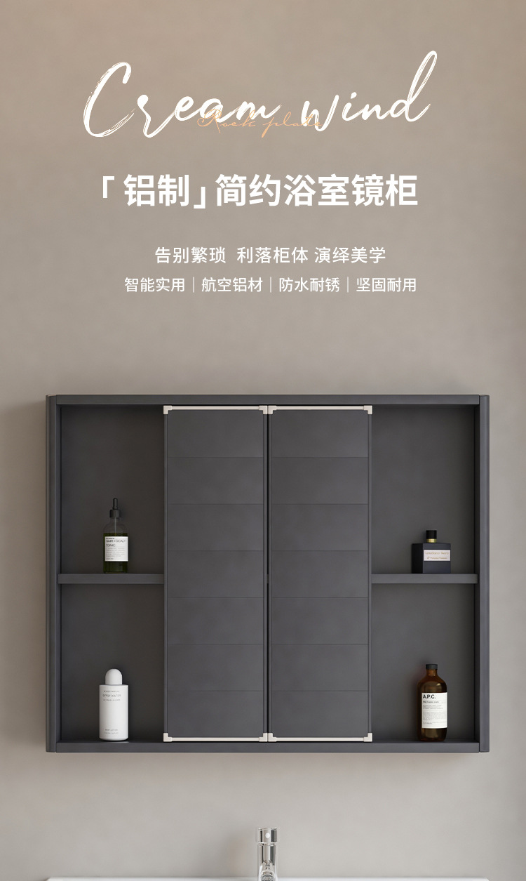 クリーム風宇宙アルミ隠し式オープン内蔵スマート風水鏡キャビネット家庭用トイレ単独浴室鏡