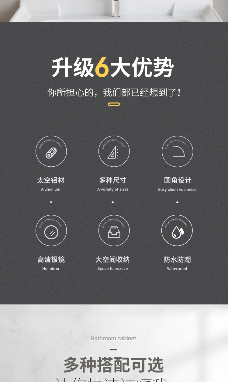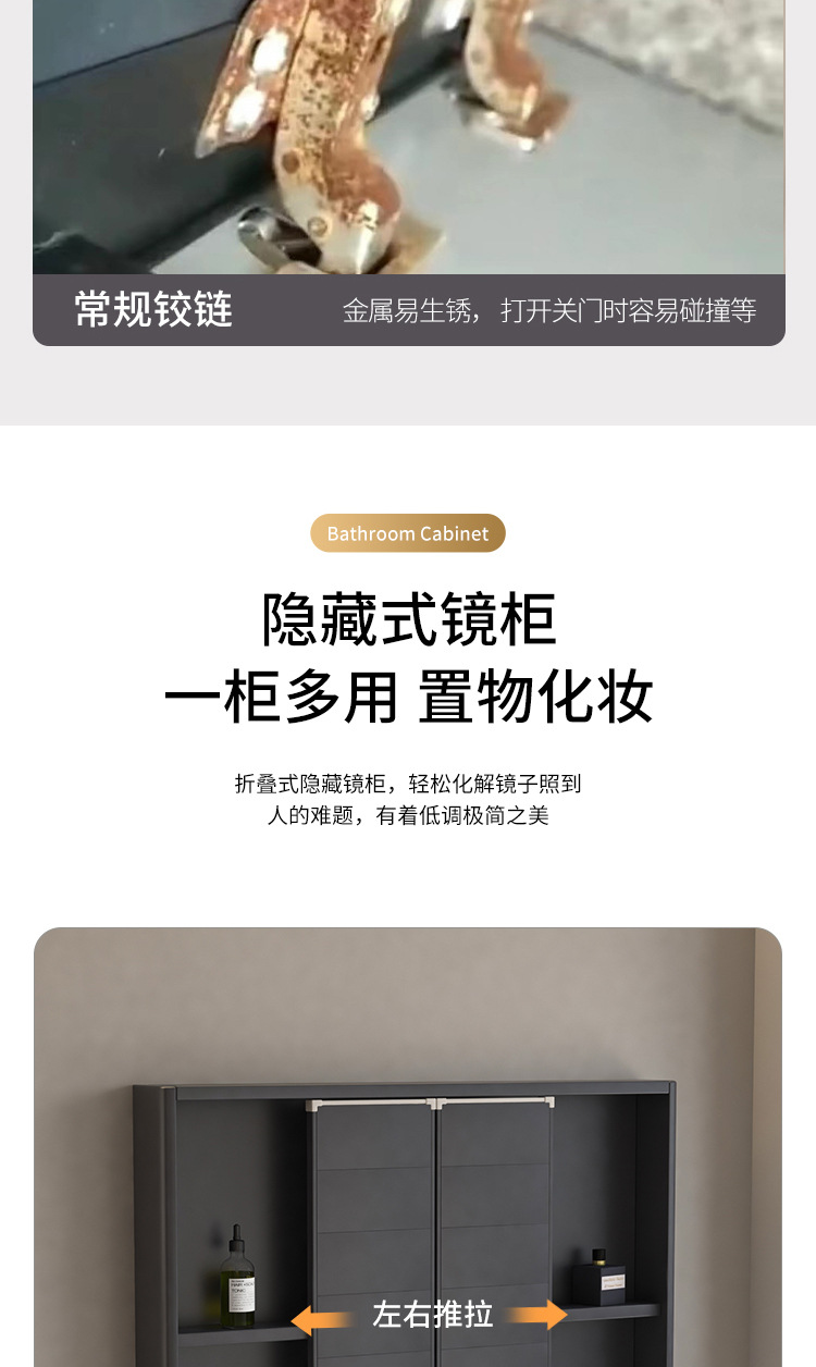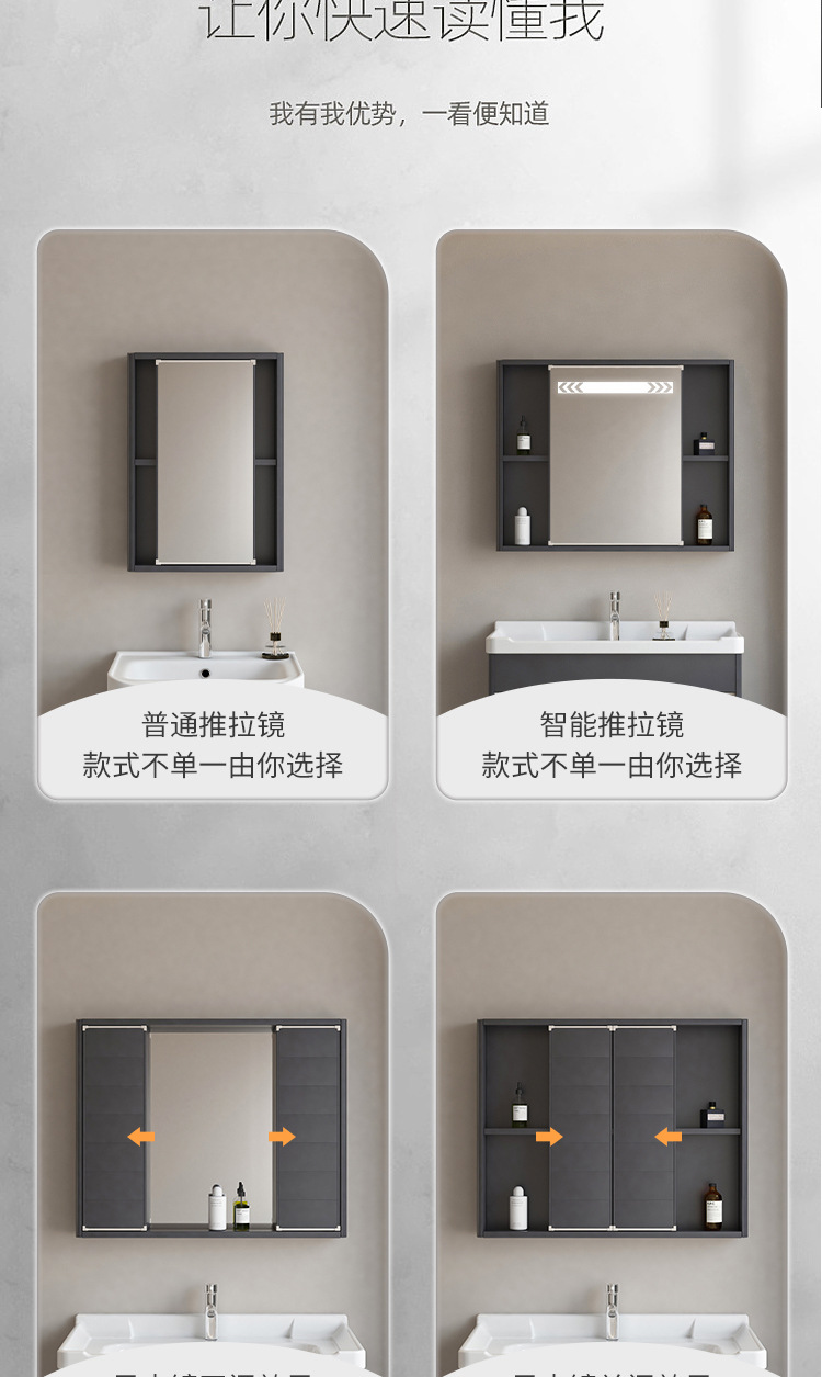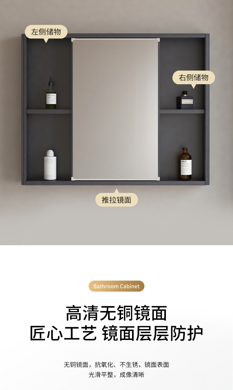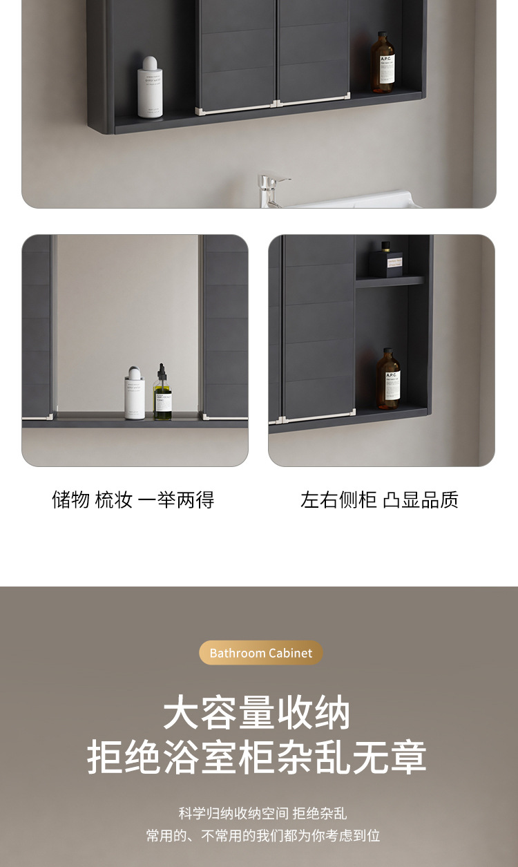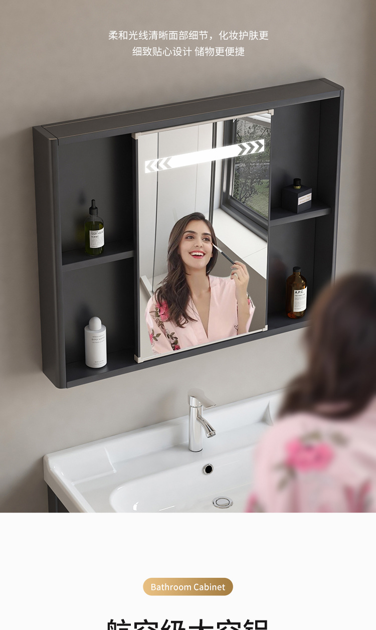 风水镜柜太空铝浴室柜组合一体陶瓷盆卫生间推拉隐藏式挂墙洗脸盆