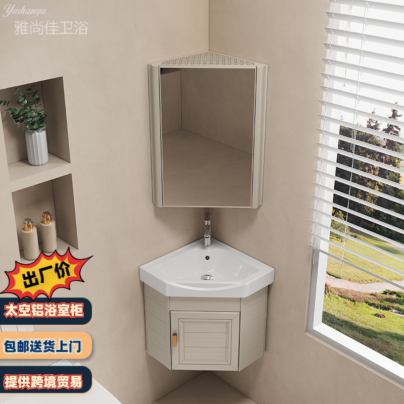 太空铝三角形浴室柜组合挂墙式洗漱洗手盆陶瓷小户型迷你洗脸柜盆