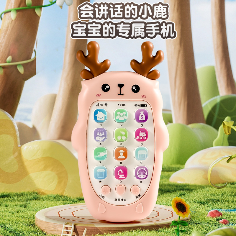 儿童益智小鹿早教手机玩具男孩女孩宝宝带音乐仿真电话婴儿可啃咬
