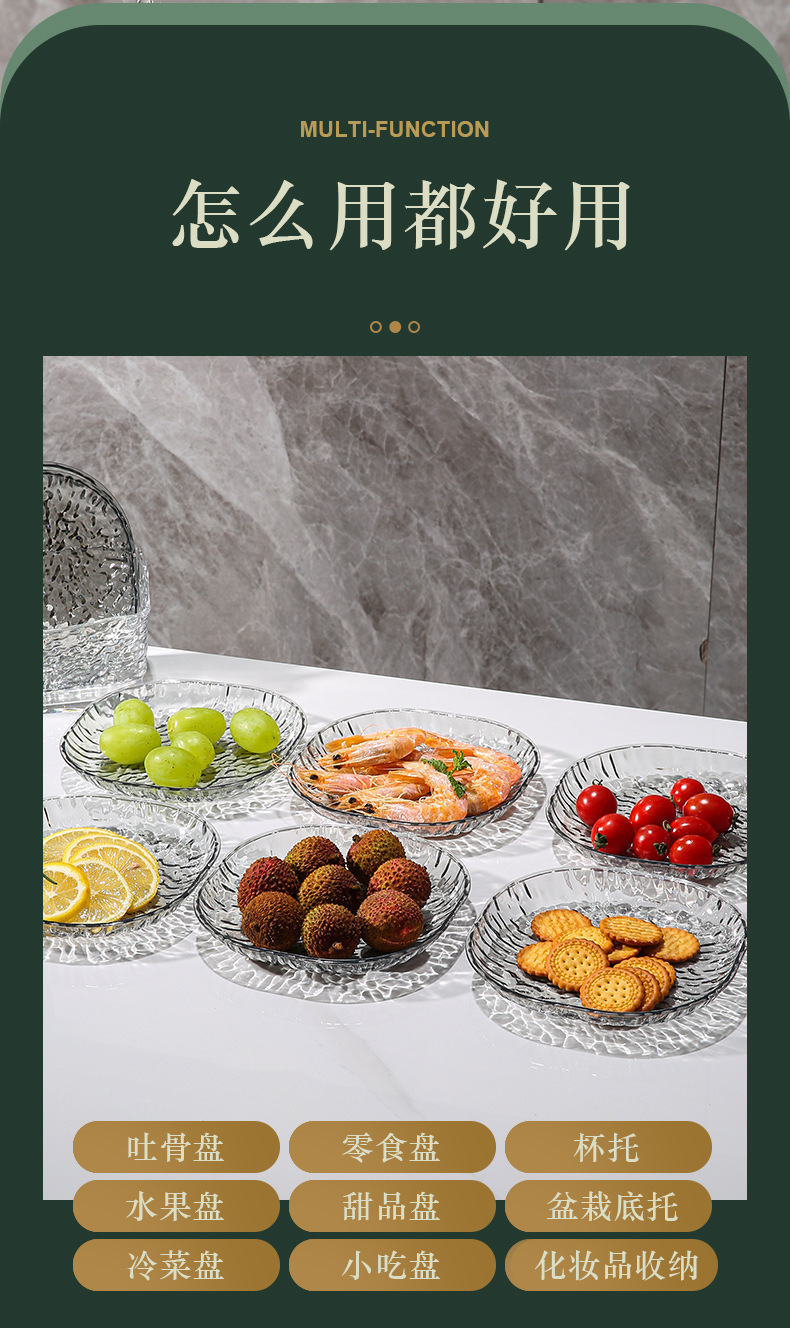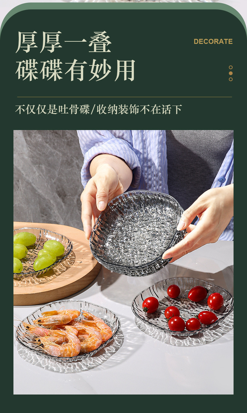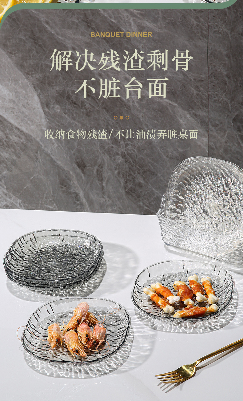 轻奢简约冰川纹家用吐骨碟餐桌垃圾盘网红透明桌面吐骨碟小盘子套