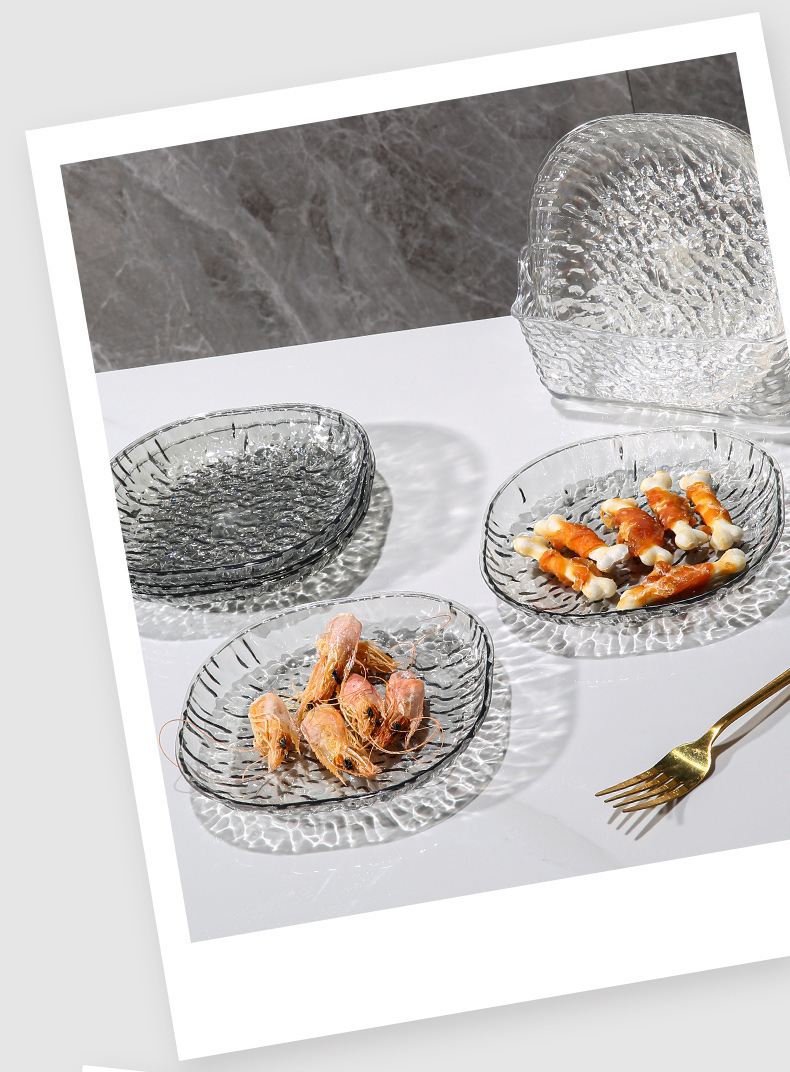 ライト高級氷河パターン家庭用骨吐き皿テーブルゴミ皿インターネット有名人透明デスクトップ骨吐き皿小皿セット