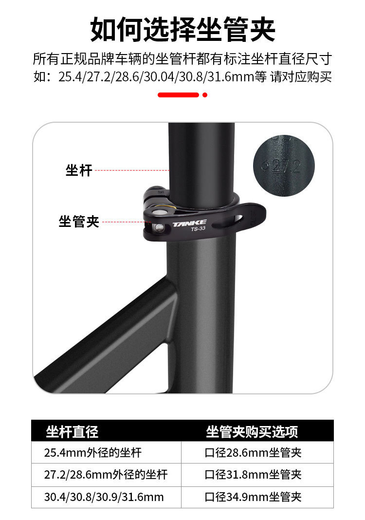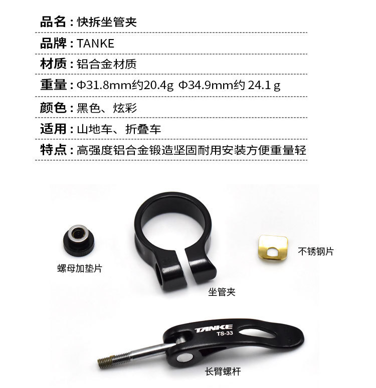 碳客TANKE自行车座管夹 炫彩铝合金公路山地车座杆夹零件配31.8CM