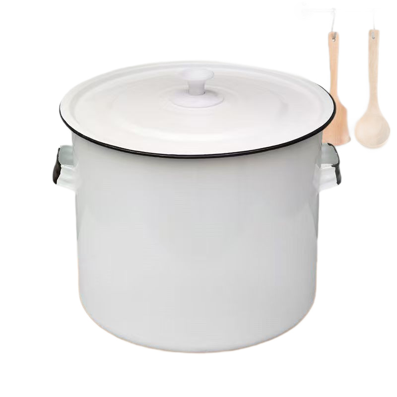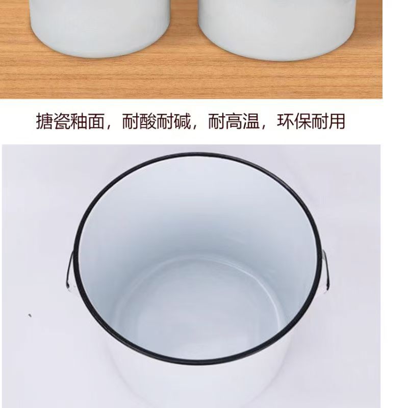 加厚搪瓷桶有盖水桶米桶实验桶酸碱缸多用桶双耳直桶锅米酒桶