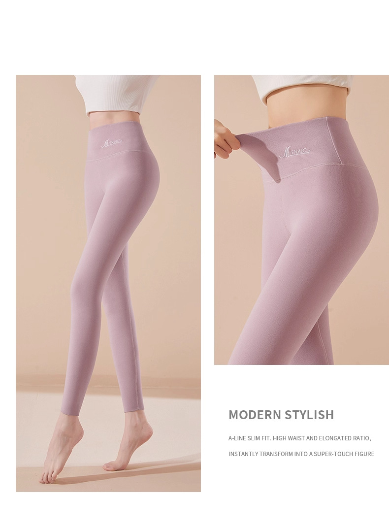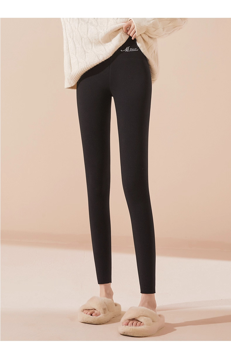 德绒打底双面磨毛内穿秋裤女舒适保暖护腰可外穿高腰九分加绒棉裤