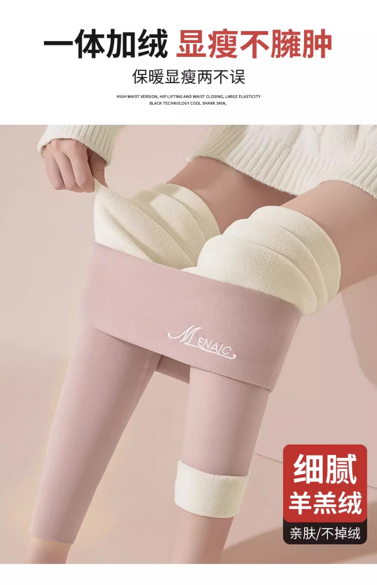 秋冬樱花绒高腰保暖裤2025新款一体毛绒棉裤800克特厚加绒打底裤