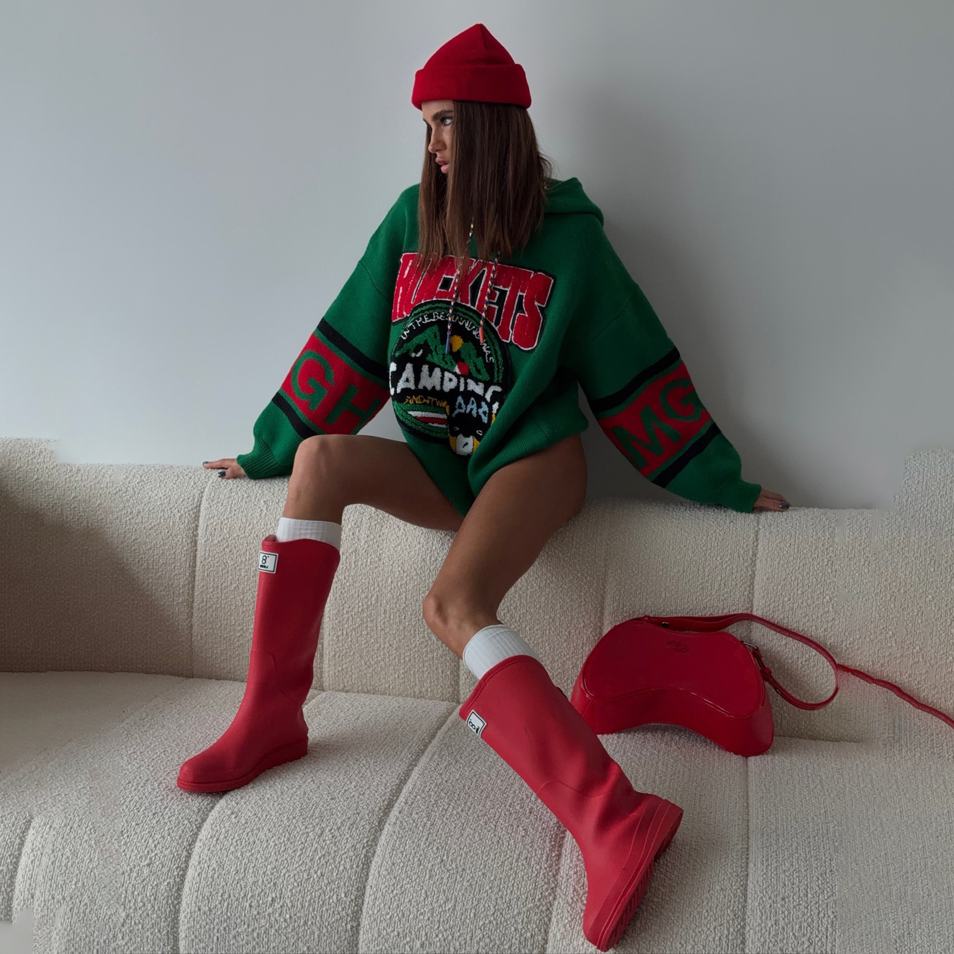 美式复古刺绣连帽毛衣女oversize 宽松休闲多色街头风针织上衣女