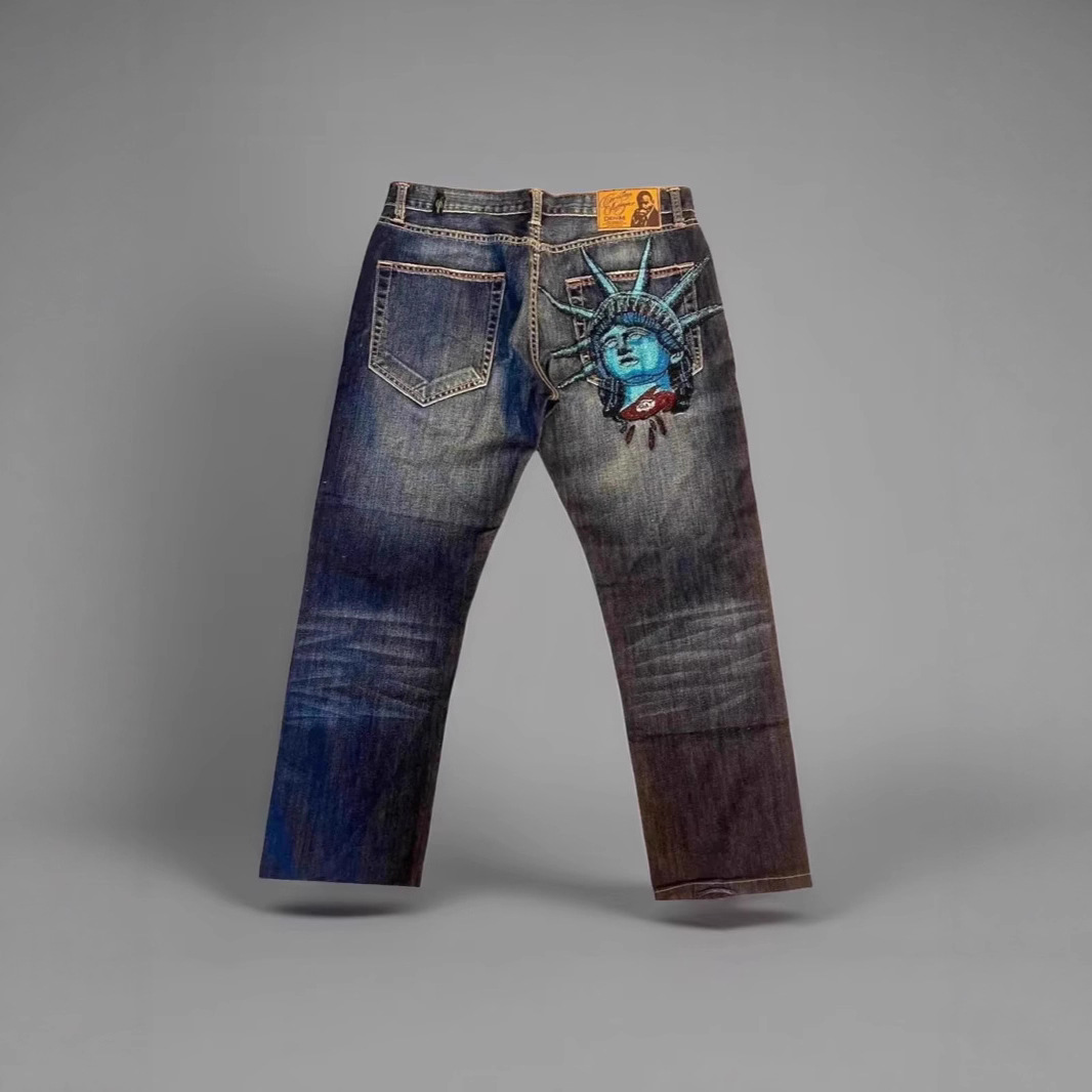 ヨーロッパとアメリカのクロスボーダー 2025 新しい自由の女神レトロ古いウォッシュジーンズ男性と女性のトレンディなストレートパンツ