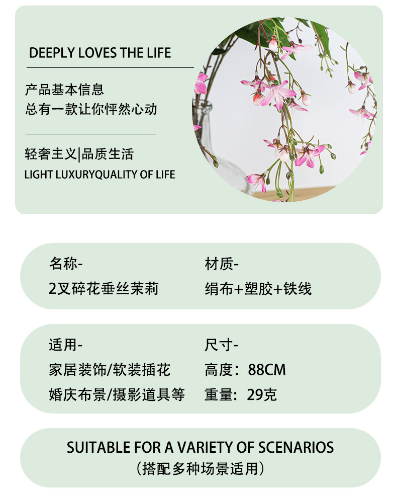 仿真2叉碎花垂丝茉莉家居装饰场景布置摄影道具插花摆件婚庆